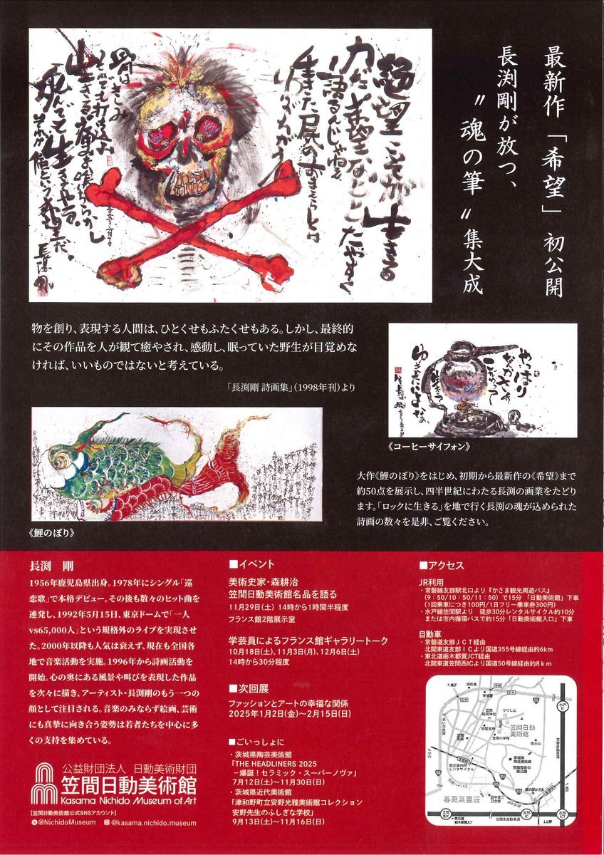 笠間日動美術館で、長渕剛さん詩画展「希望」開催中とのこと! この土日は笠間で「IBARAKI DREAM LAND」が盛り上がりましたが、今週末10/25から「笠間の菊まつり」も始まるし、時々、ぶらりと笠間へ是非!😊 yomiuri-townnews.com/poetry-exhibit… #長渕剛 #美術館 #笠間市 #茨城県