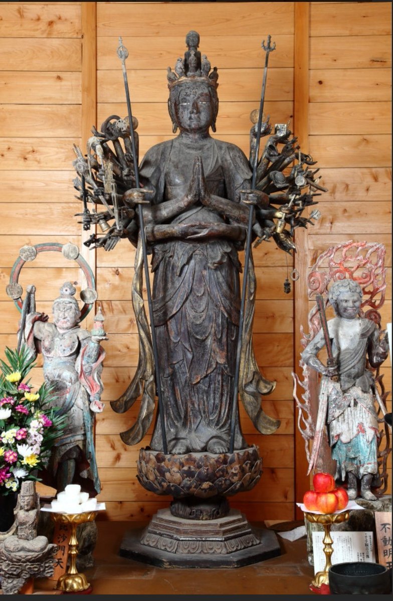 2.楞厳寺 木造千手観音立像(重文)、木造不動明王立像・毘沙門天立像 鎌倉時代作で衣紋が美しいそうですが私は拝観していません。こちらも笠間六体仏だそうです。 #かさましこ文化財公開 #笠間市 pic.x.com/wMFkMJsIMV