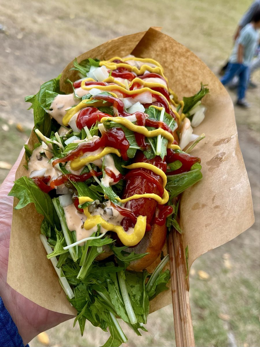 笠間芸術の森公園の #イバラキドリームランド 来ました! まずは腹ごしらえということで、鉾田市LAX STOREの「茨城ドッグ」を! 肉だけでなく、野菜がたっぷりなので、ヘルシーでパワーが出ます! しかし食べにくい…😅 #グルメ #笠間市 #茨城県 pic.x.com/1uE2r0ocSd