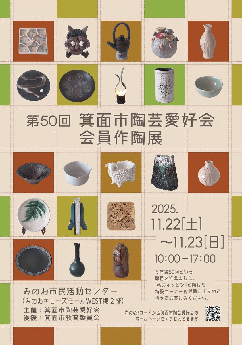 【#タッキーCネットだより】 箕面市陶芸愛好会 会長 岡嶋克典さんと11/22(土)・23(祝)みのお市民活動センター開催、第50回箕面市陶芸愛好会 会員作陶展のお話。 今回は第50回記念として「私の一品」と題し、今まで作った作品の中から1点を展示する企画も! minohshi-tougeiaikoukai.jimdofree.com #minoh #箕面 pic.x.com/hVrmRv2wtK