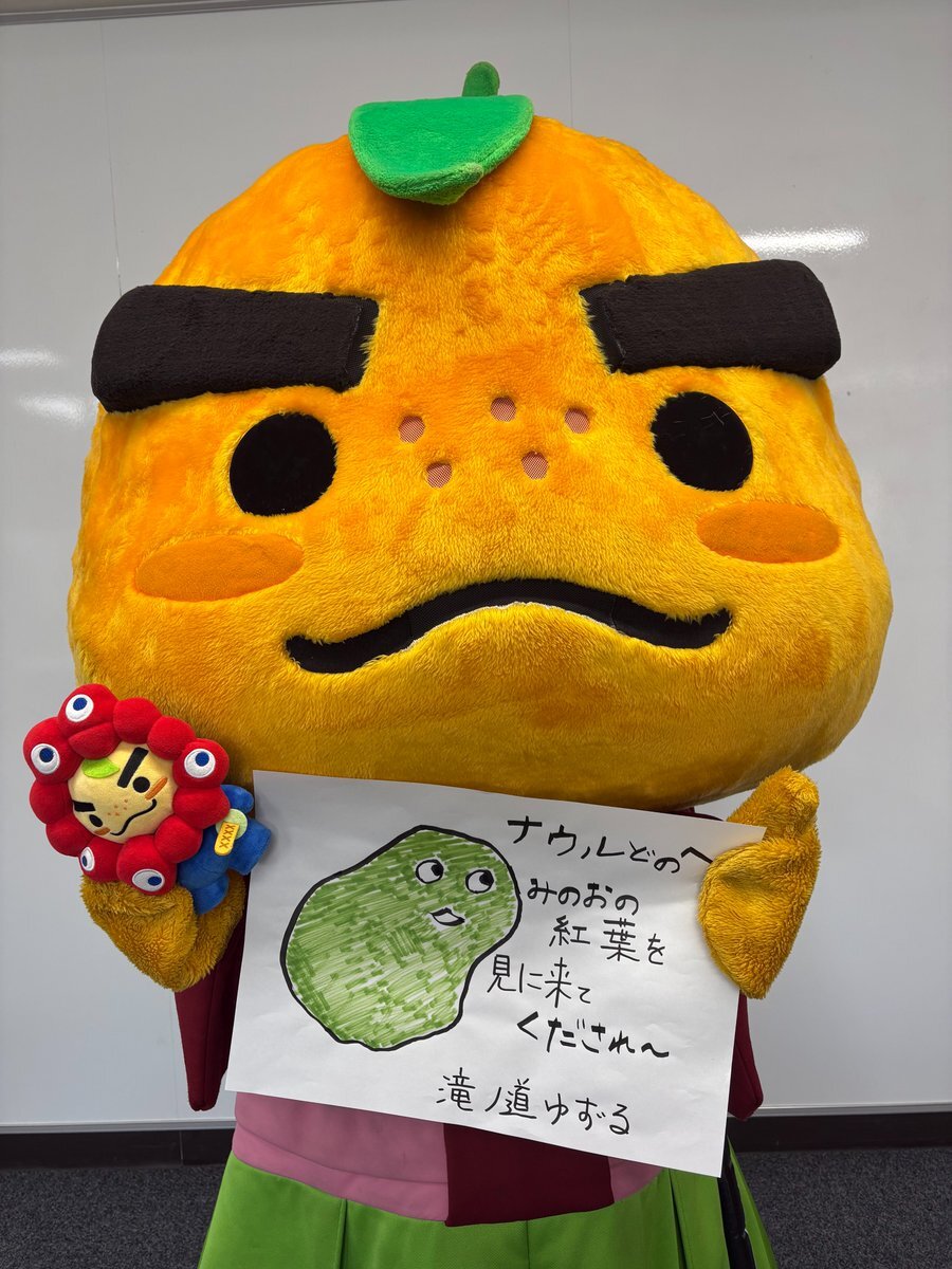 こんゆず~🍊 最近 #ナウル 殿に会えていないでござるなぁ・・ \\💡// ナウル殿にお手紙を書いてみるでござる😆❣️ ナウル殿、#箕面 の #紅葉 を見に来てくだされ~🤗💚💛 #滝ノ道ゆずる #minoh #ナウル共和国 #万博ロス #大阪・関西万博2025 @nauru_japan pic.x.com/OSNlHuPZyI