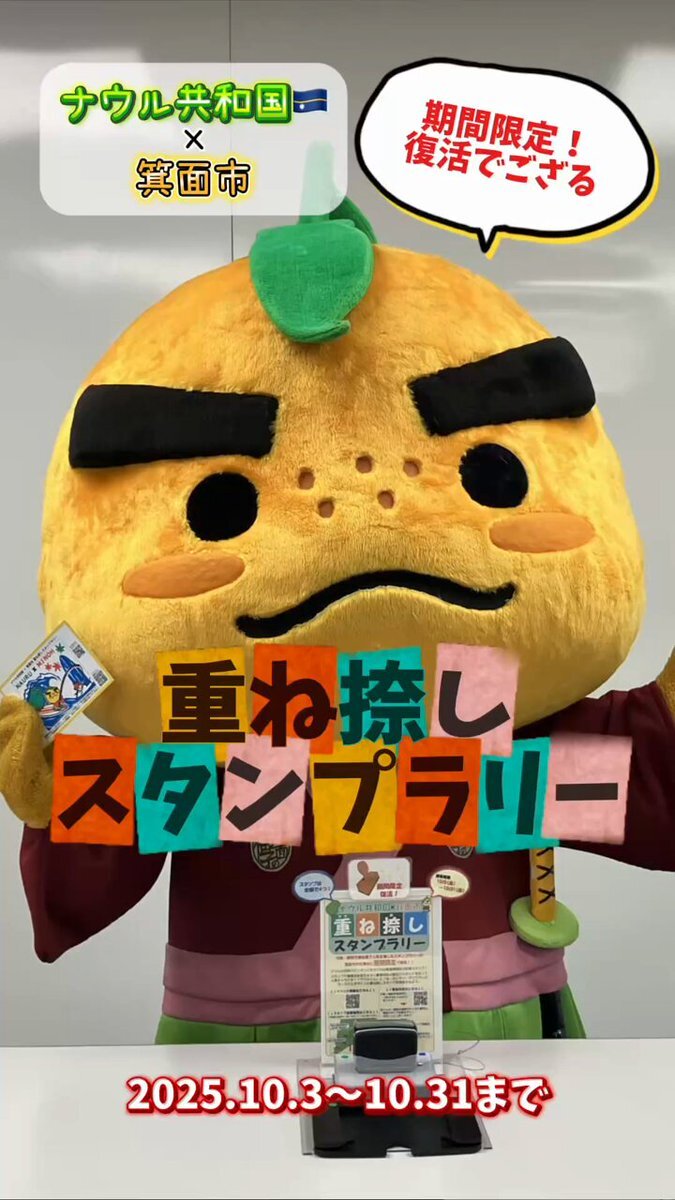 こんゆず~🍊 #大阪・関西万博 会場で好評であった #ナウル 殿× #滝ノ道ゆずる のコラボスタンプが明日10/3(金)から期間限定で復活でござるーっ🥳 #スタンプラリー 完走の暁には特典ももらえるでござるよ😍 詳細は⬇️ city.minoh.lg.jp/eigyou/banpaku… #ナウラー も参加してくだされ~🏃 @nauru_japan