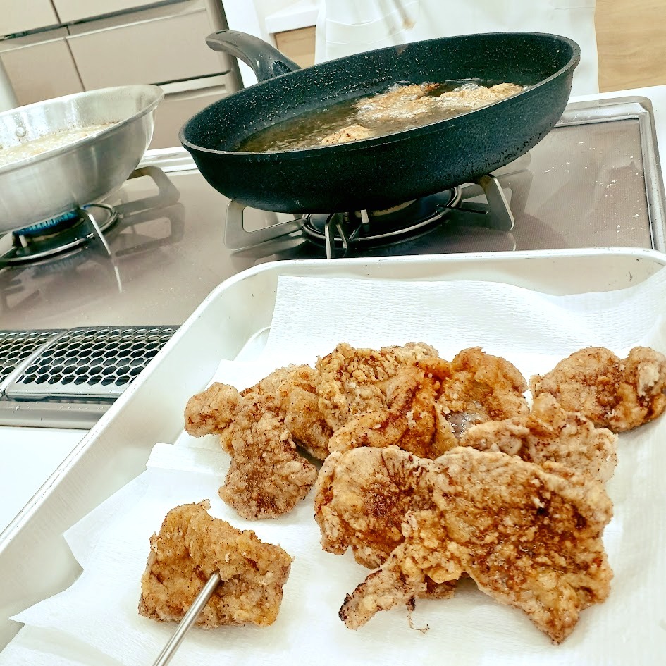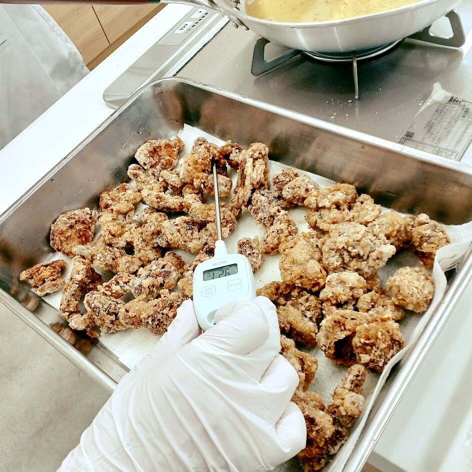 昨日の続き。 #ジビエ給食 🦌には #エゾシカ肉の竜田揚げ🦌もおすすめ! 2人体制で片っ端から揚げております。 中心温度は、、、92℃。よーし! #エゾシカ給食セミナー(北海道主催)より @eiyolabo #えいようラボラトリ合同会社 #管理栄養士 #シカ肉博士🦌 #PhD pic.x.com/VWSh7Iskfg