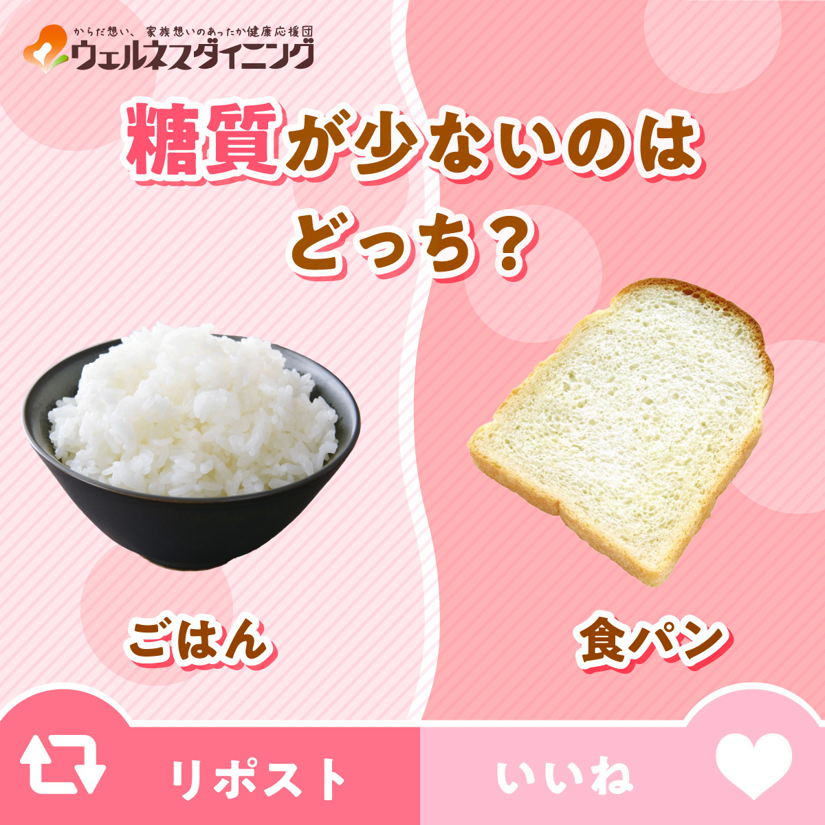 火曜日は栄養に関するクイズ形式でご紹介 🍚糖質クイズ!糖質が少ないのはどっち?🍞 糖質が少ないのはどっちでしょう?✨ A:白米お茶碗1杯(150g) B:食パン6枚切り1枚(約60g)