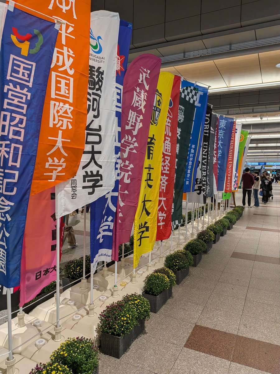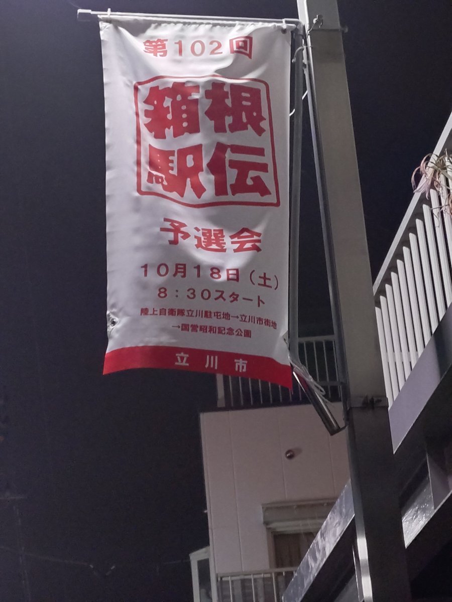今年も立川駅に出場校の幟が集まりました🎽 本戦でのシードを狙う大学、まずは本戦出場を目指す大学、予選会出場という目標を達成した大学 それぞれの思いを胸に、見えない襷をおよそ40キロ先、大手町のスタートラインまで運んでいってください👍️ みんな頑張れ❗️❗️ #箱根駅伝予選会 pic.x.com/yscbamiWcX