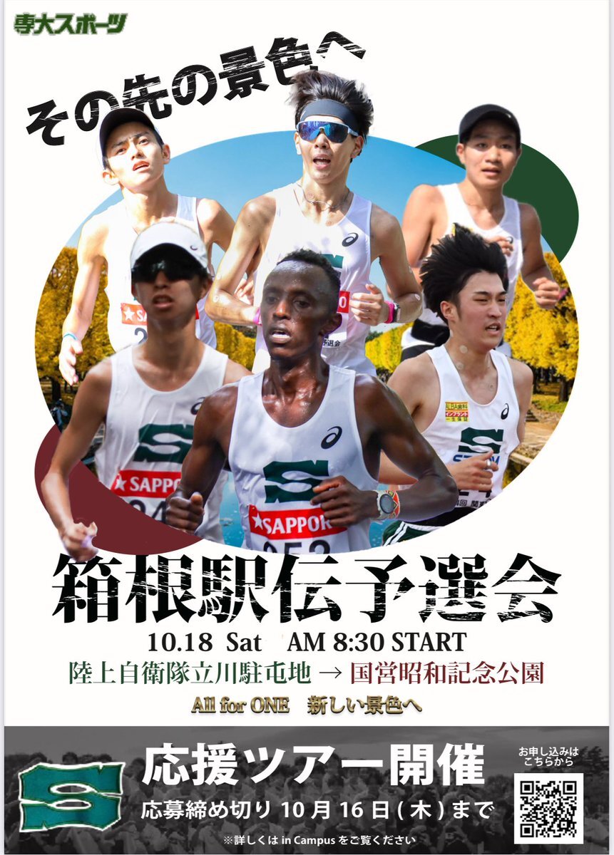 【陸上競技部】 <#箱根駅伝予選会 まであと4️⃣日!> 学生向け応援ツアーの締切が迫っています‼️ お申し込みは16日(木)16時まで🕓 現地での応援よろしくお願いします📣 #専修大学 x.com/sensuponow/sta…