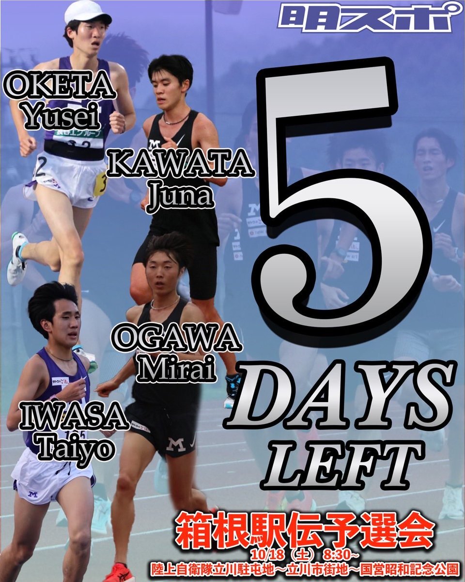 箱根駅伝予選会まであと5日! 本日のカウントダウンは鹿児島高校ペア! 3年 増水蓮、2年 末永諒馬 #駿河台大学 #蒼黒の逆襲 #ダークホースじゃ終われねぇ #allforwinruntowin #箱根駅伝予選会 pic.x.com/6JWndDl2iu