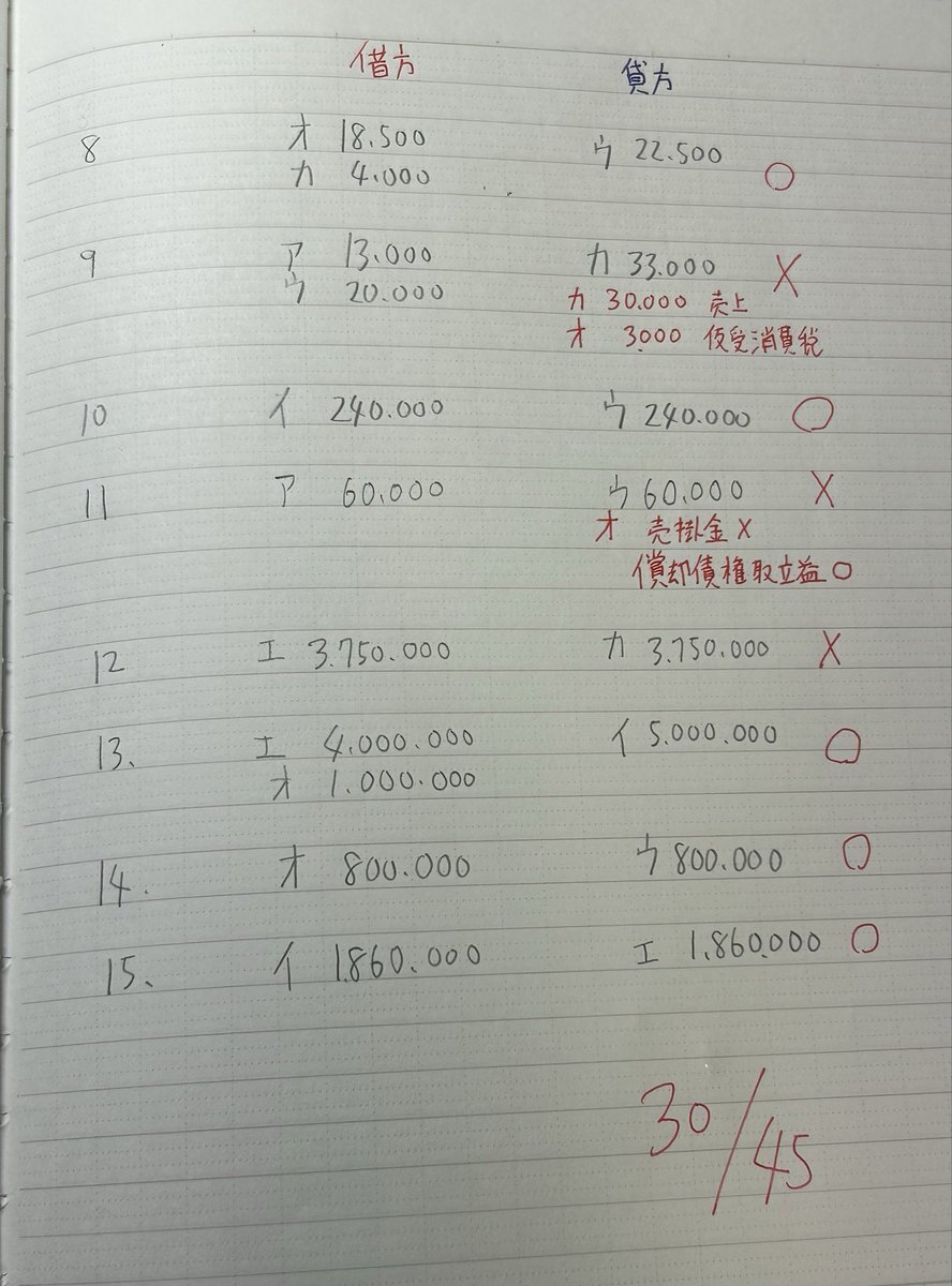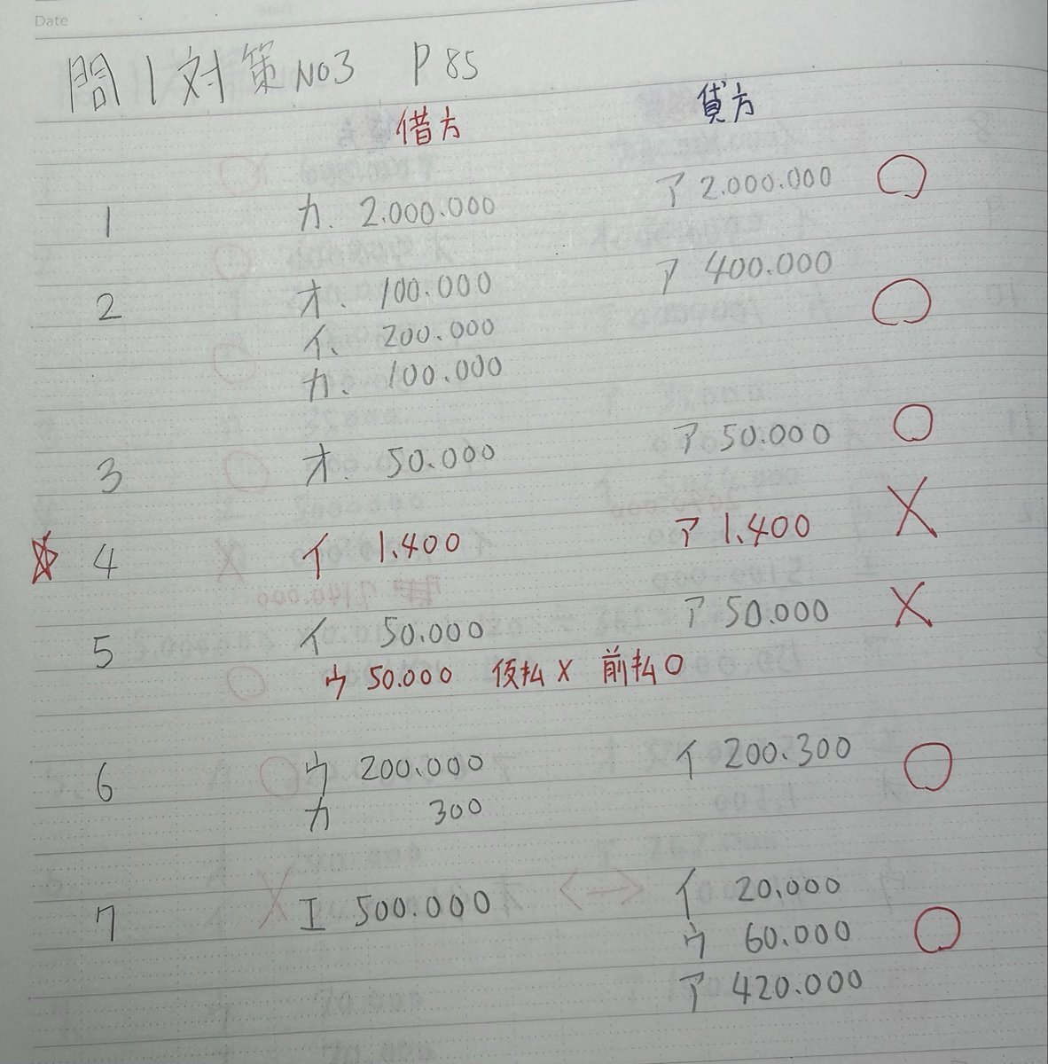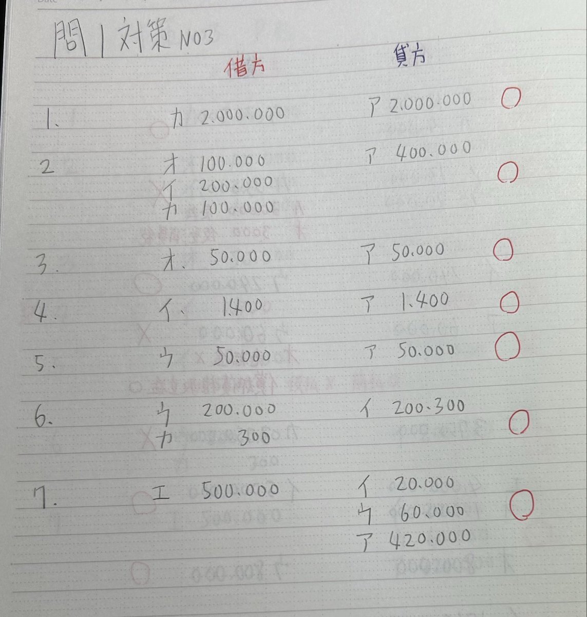 問1対策No2へ 明らかに苦手仕訳があるのが分かりますね…あと細かな計算が必要なこと増えてきたから電卓買おうか検討中(°▽°*) #簿記3級 pic.x.com/JJ5sqjVErH