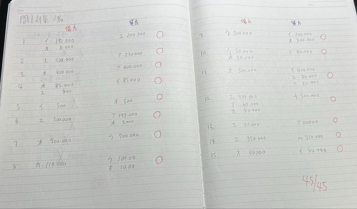 前回、ちゃんと勉強し自信満々で簿記3級を受け、不合格でした。近々2回目の試験です。前回の試験から今まで休まず毎日問題を解き続け、間違えた箇所は見直ししてきました。だけれども前回の試験を受けたときの私と今の私、全く成長している実感がない。#簿記3級 #簿記