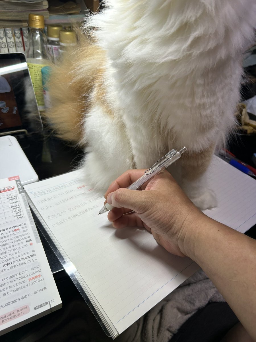 最近目が疲れやすい… 気分転換+軽い運動の目的も兼ねて目薬を買いに行ってきます、猫はもの凄く暇そう 正直十年ぶりくらいに割り算のカッコ使った気がしますw #簿記3級 pic.x.com/tTauShl1Qe
