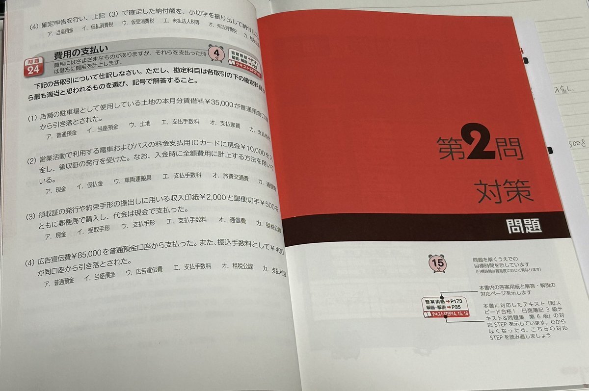 夜勤明けだけど頭はしっかり働いてるので夜勉強開始。 とりあえず問1対策は45問分が通しで終わったので、あとは空いた時間に繰り返して解くだけ! そして問2対策へ……これ簿記の勉強始めた最序盤でやったやつだ!w #簿記3級 pic.x.com/QXYHOEbflF