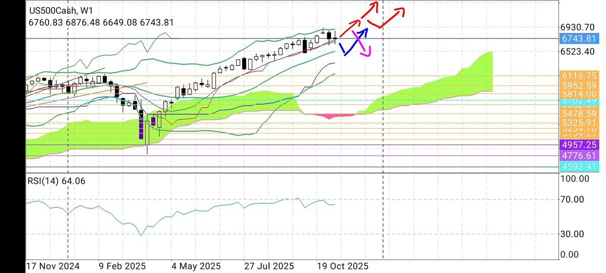 おはようございます PayPayポイント運用、チャートから考察 S&P500の少し先までの予測更新です。 今月は落ちぎみのSP500ですが、まだアップトレンドの流れの中。 なのだけど、、 チャート予測↓ fxchartyosoku.ペイ娘.com/2025/11/s-1117… #米国株 #SP500