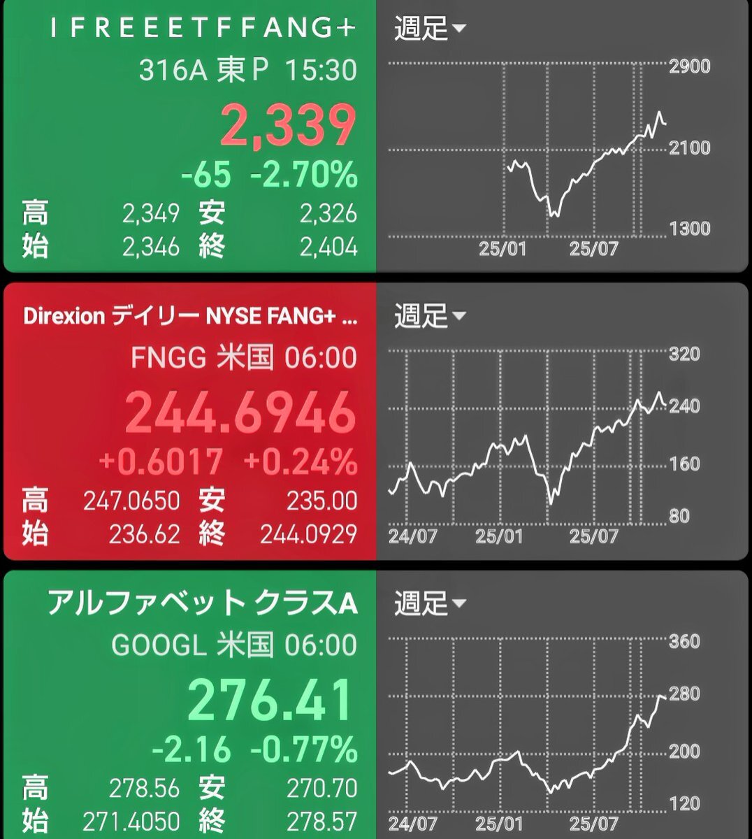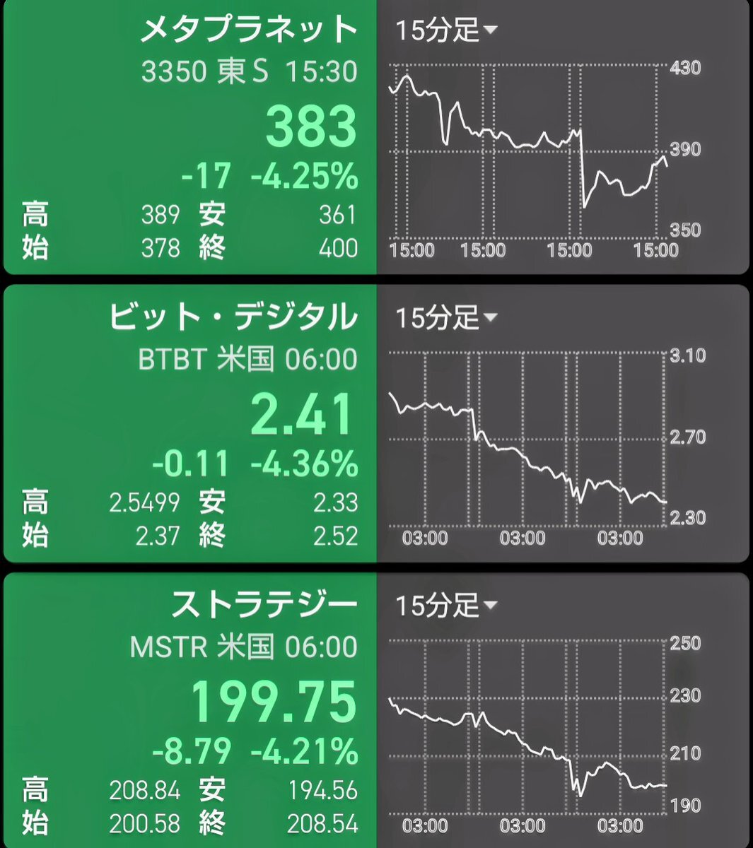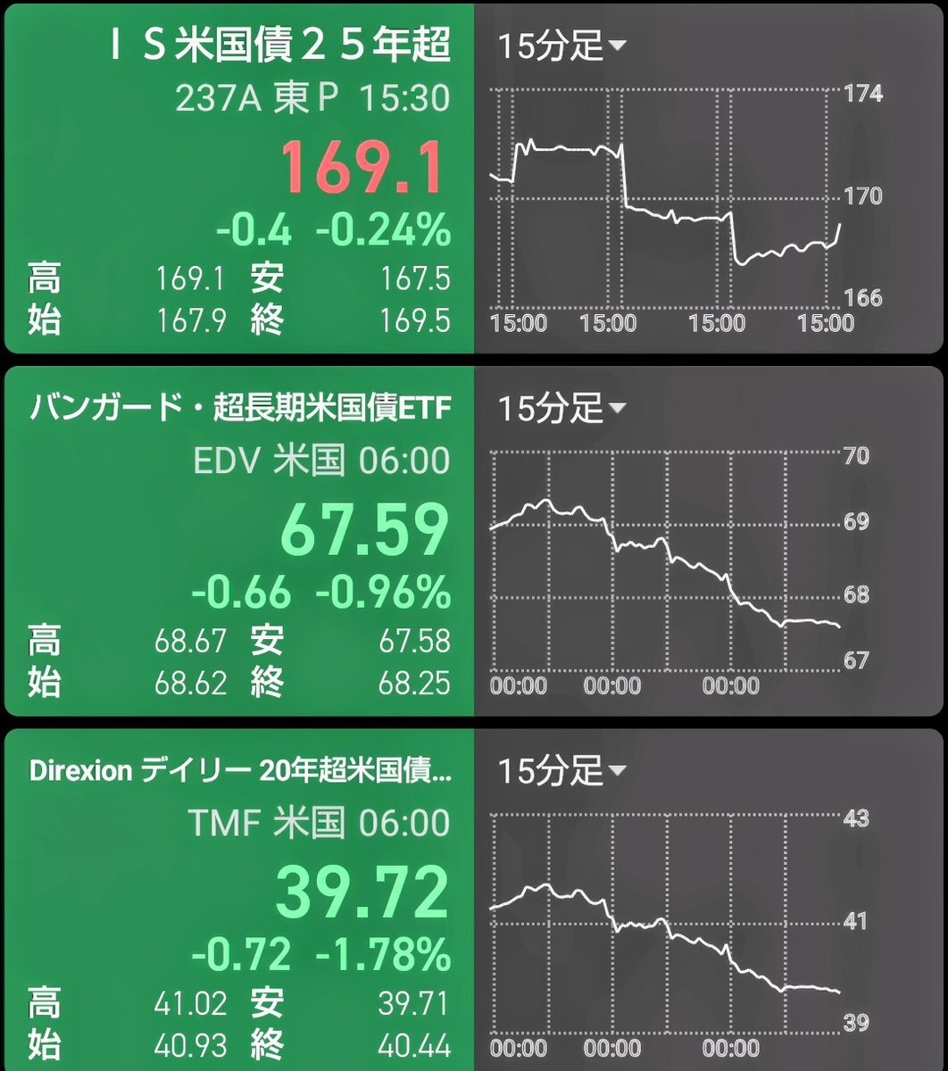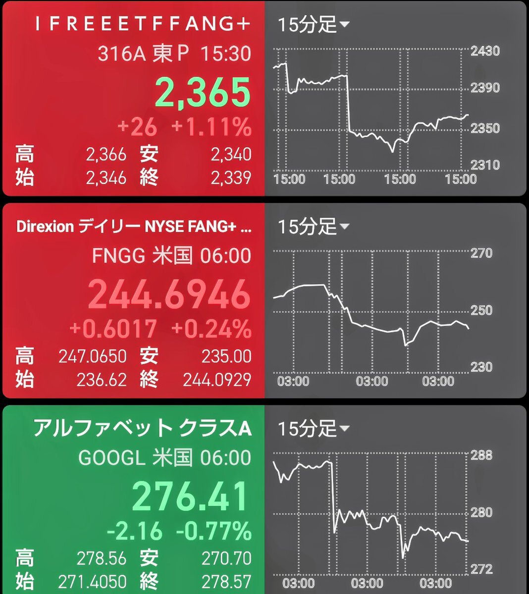 「日米市場🇯🇵🇺🇸の個別銘柄(銘柄,値動き⤴️⤵️)」をご覧の皆様、今は平日は15分足にしてますけど、他に希望ありますか?🤔 ファング➕ 316A(FANG+),⤴️ $FNGG,⤴️ 米国債💰️ $EDV,⤵️ $TMF,⤵️ 仮想通貨₿ 3350(メタプラネット),⤵️ $MSTR,⤵️ #米国株 #米国債 #FANG $NYFANG #投資家さんと繋がりたい