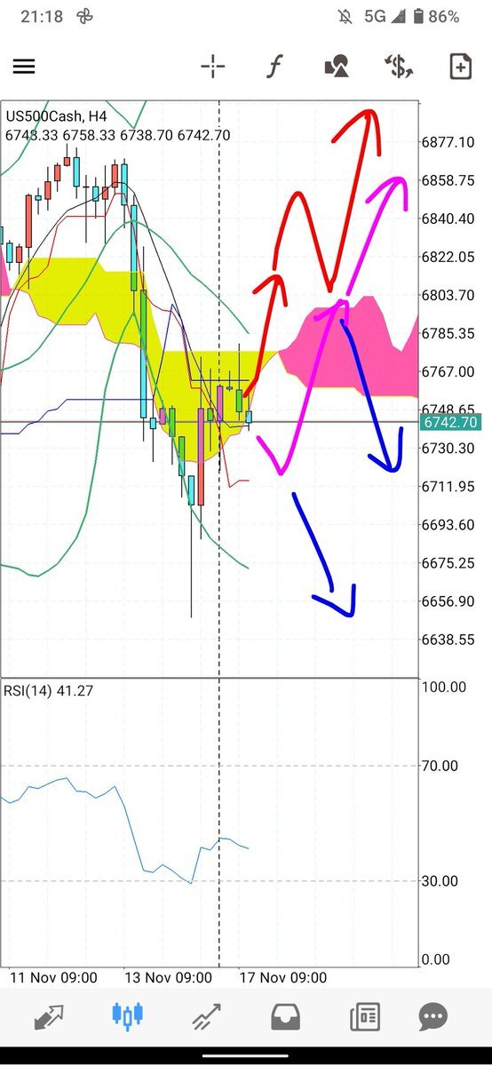 こんばんわ PayPayポイント運用、チャートから考察 日足トレンドラインからの反発が継続するかどうかですね。 下抜けるまでは上がる目線。 そうなるとこのまま上がるのか、もう一度底を確認してからの上。 そこから高値付近で落とされるてしまうのか、雲から落とされてしまうのか #米国株 #SP500 pic.x.com/KIbgsztARJ x.com/eLVpB1d4YF34VF…