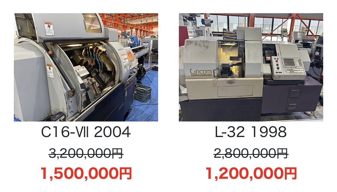 一気に寒くなって来ましたね💦 2週間前くらいはまだ空調服着てた気がしたんですが笑 見切り品コーナーが更新されました✨ フライス20万、ラジアル45万などいろいろありますよ👍 是非ご覧ください🙇 ⬇️ kkmt.co.jp/pages/bargain #工作機械 #ものづくり #製造業 #溶接 #金型 #金属加工 #精密加工 pic.x.com/y5NTDba91r