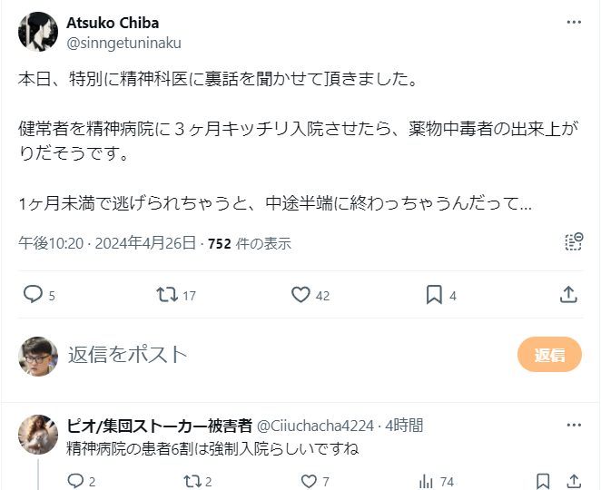 >特に精神科では薬依存患者作り出したり 貴重な証言。 過去にも精神科医が画像の様な事ポストしてたし。 創価の嫌がらせ被害者で、精神病院への措置入院でジャンキーに仕立てられた人多そうだな。 #創価学会 #精神科 #麻薬 #ジャンキー #中毒 #強制 #嫌がらせ #ストーカー #在日 #背乗り pic.x.com/ohGuBjZMxt x.com/7PkANikWlE2666…