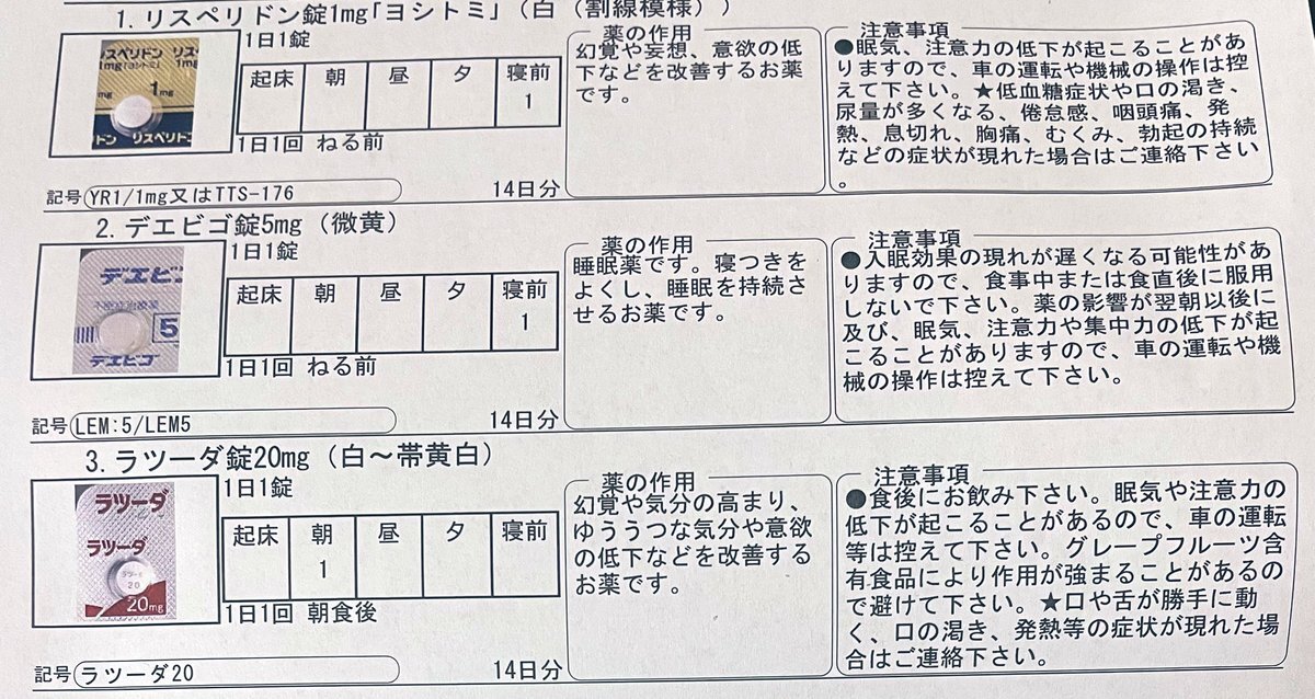 閉鎖病棟に2回ぶちこまれたことがあってリスペリドンを飲まないといけないんだけど正直効果あるのかいまいちわからない精神的な変化の実感はないデエビゴも量少なくて意味ない。希死念慮が時々あったこと辛いことを先生に話したらラツーダが処方された。明日飲んでどうなるか楽しみ #精神科 #発達障害 pic.x.com/8ZQHkGkBkP