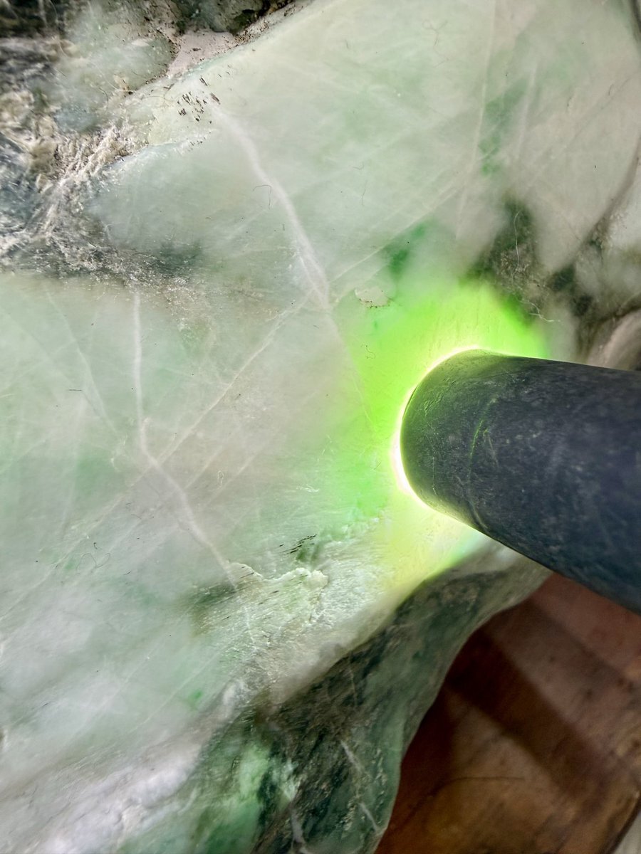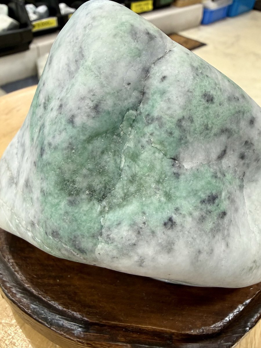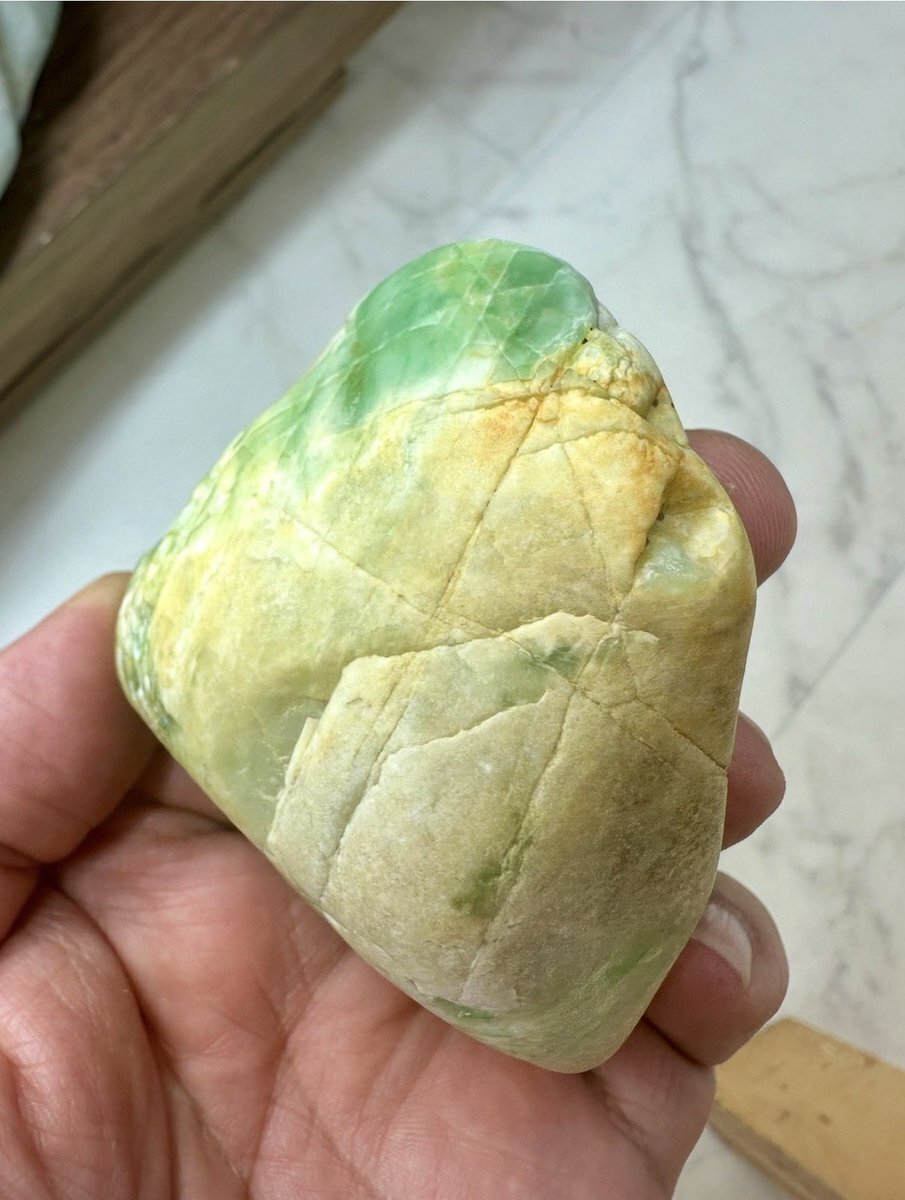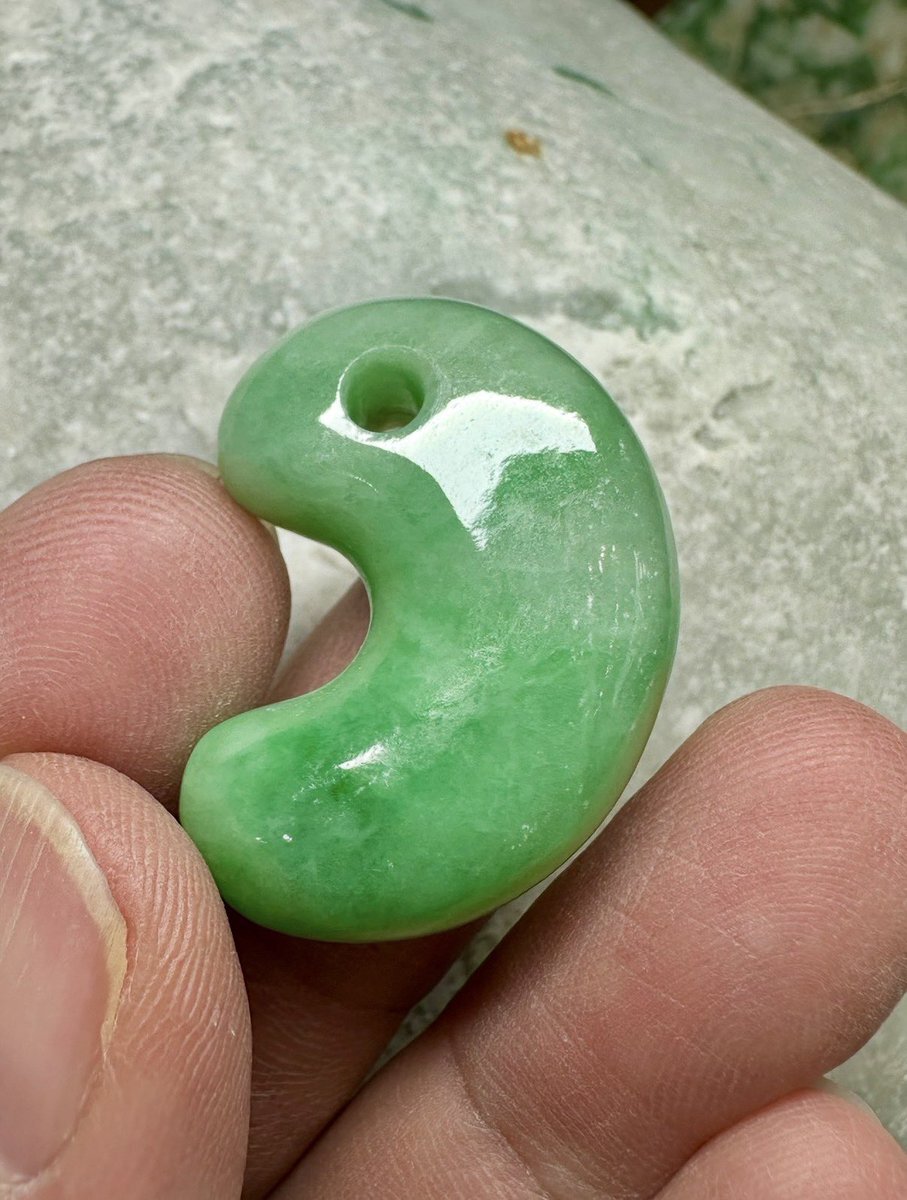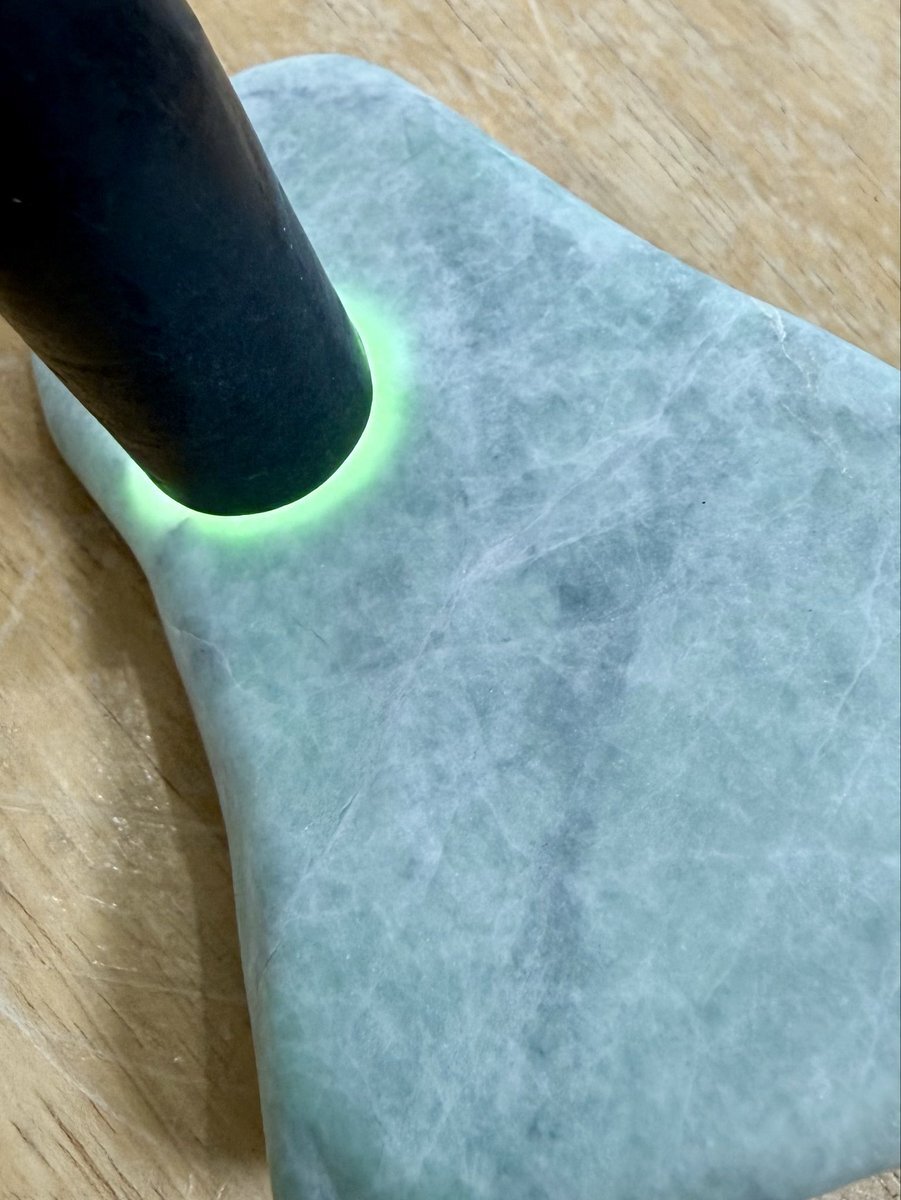 今日のヒスイは、 ロウカン質の一歩手前❗️ 「濃い緑(翠)🟢の翡翠❗️」です😁 最近、濃い緑色の(良質な)翡翠の流通が減っています。 こちらは一見クリソプレーズにも見えなくもないですが、持った時の質感(石の表面だけでなく全体的に)が違いますね😁👍 #濃い緑色の翡翠 #糸魚川翡翠 #ヒスイ原石 pic.x.com/5cOpjFw5nc