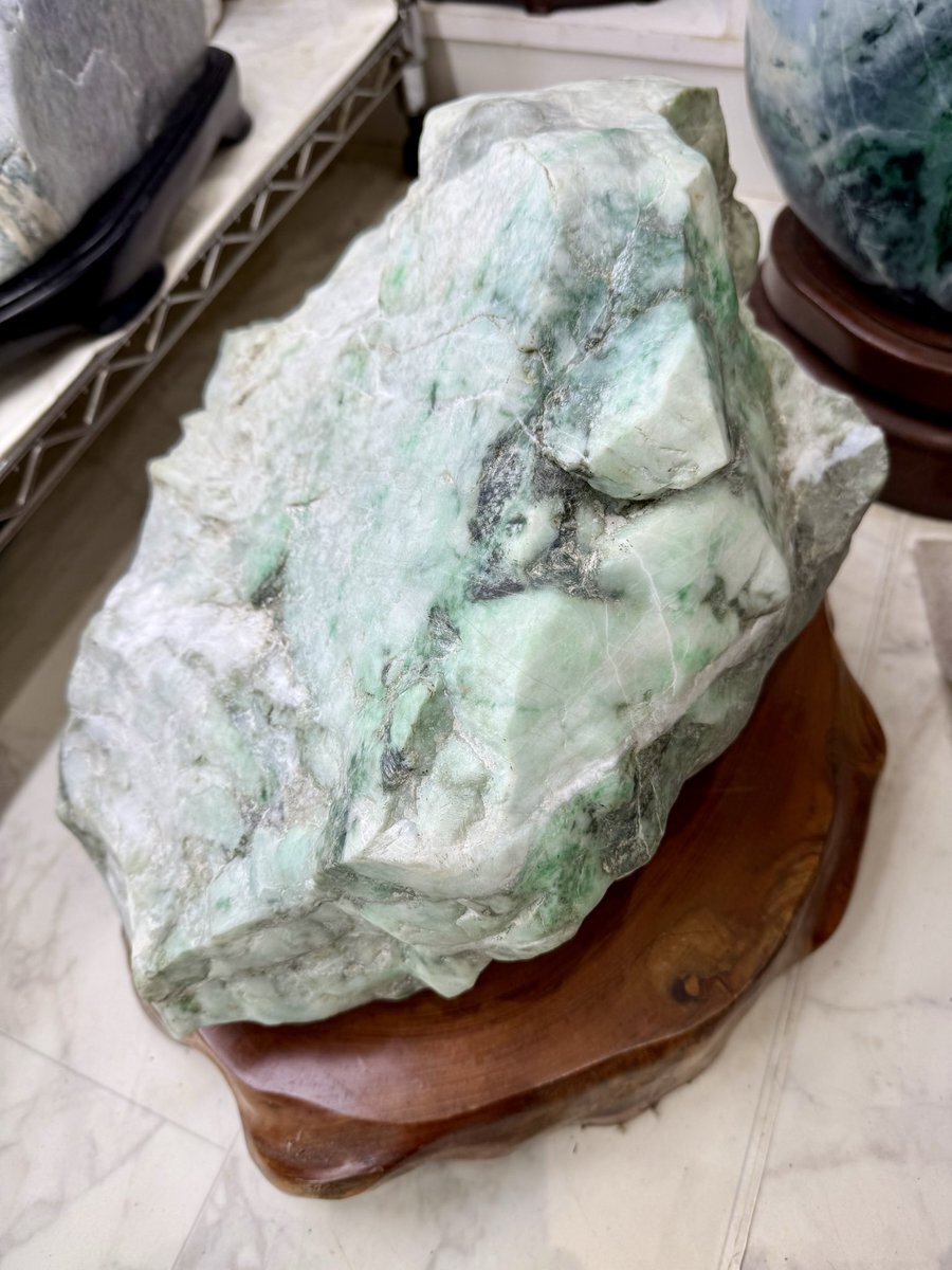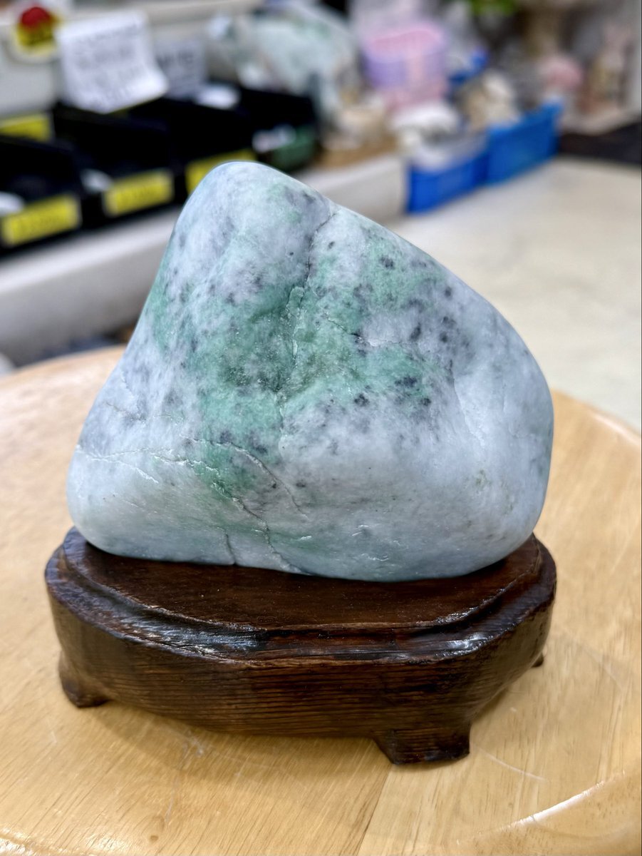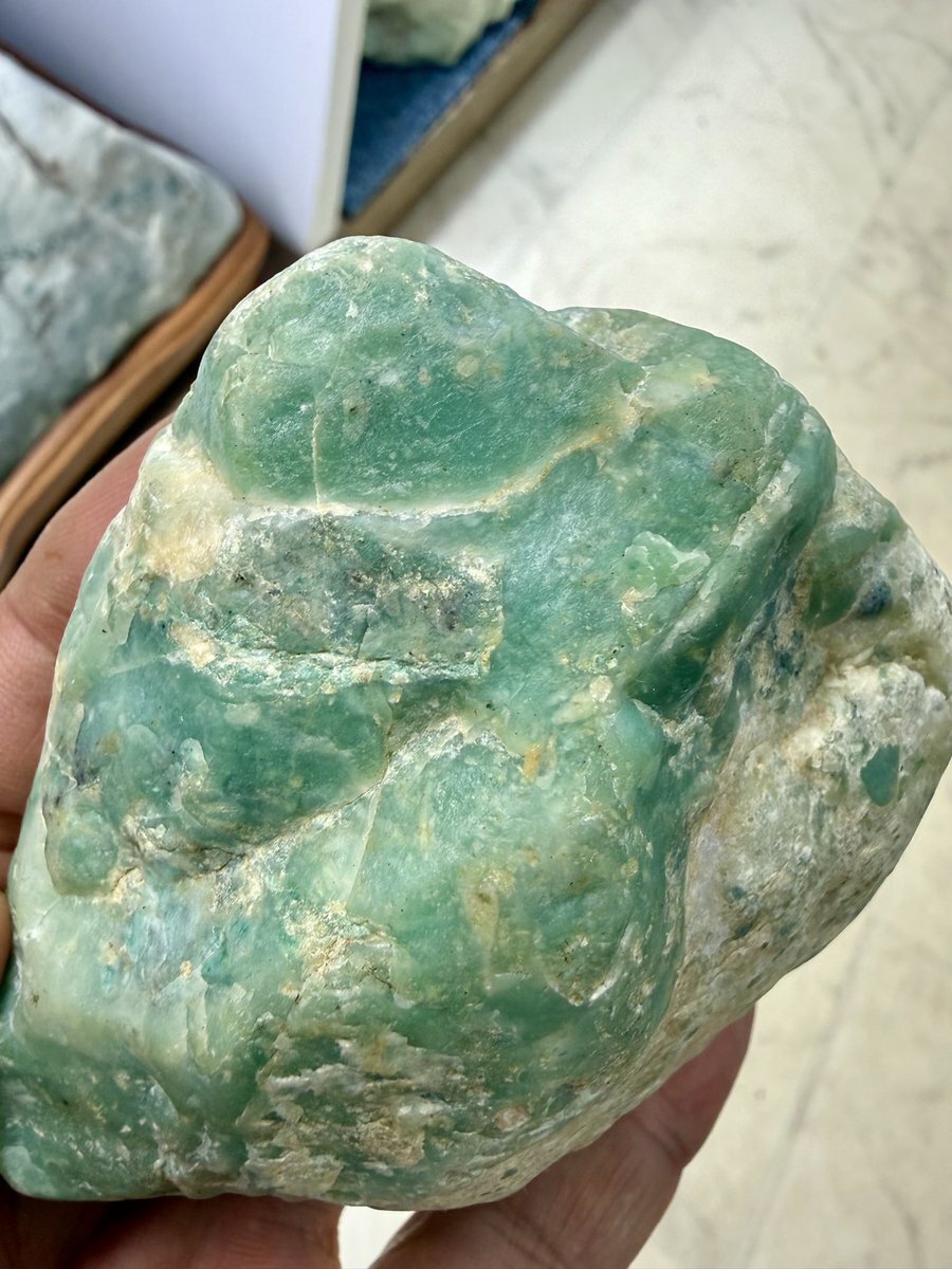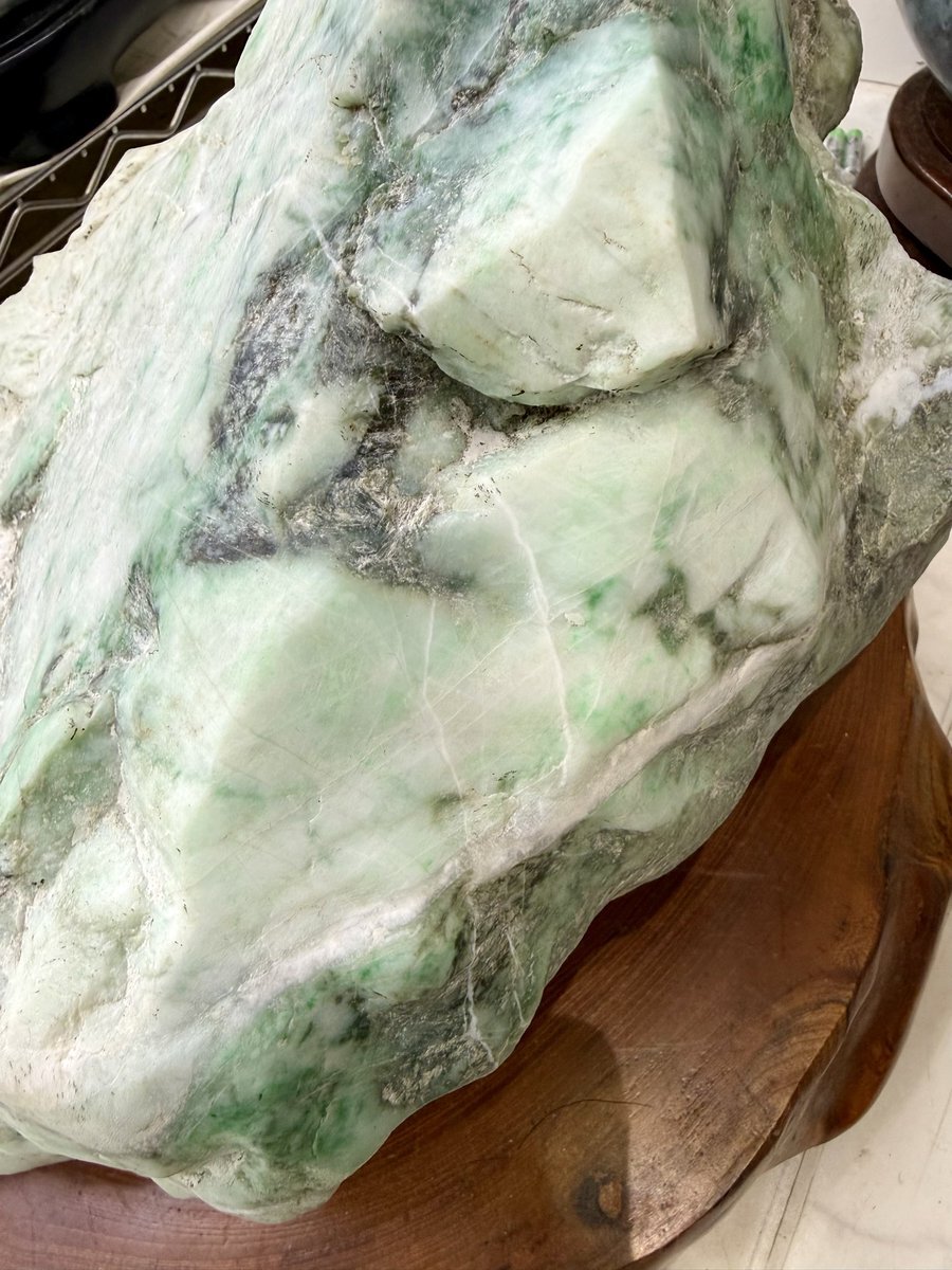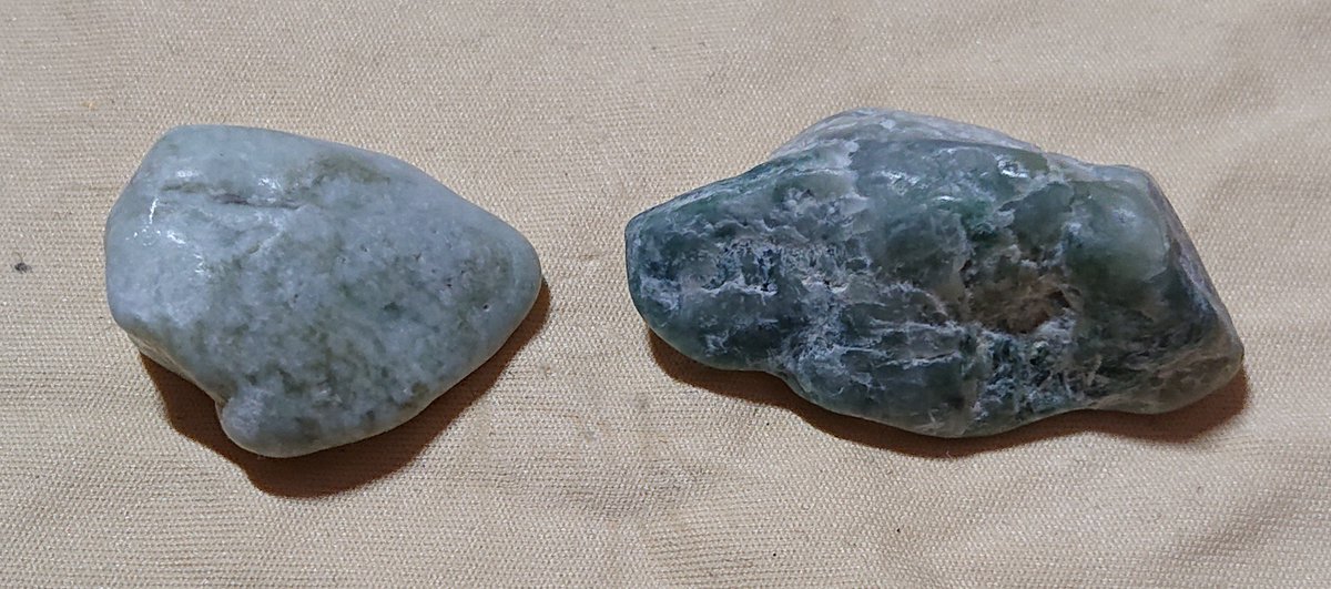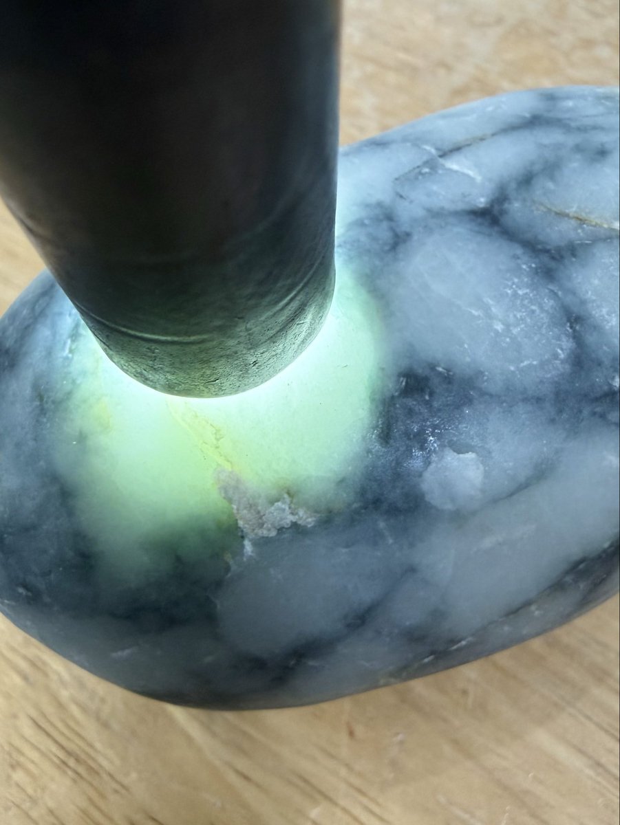 今日のヒスイは、 ロウカン質の一歩手前❗️ 「濃い緑(翠)🟢の翡翠❗️」です😁 最近、濃い緑色の(良質な)翡翠の流通が減っています。 こちらは一見クリソプレーズにも見えなくもないですが、持った時の質感(石の表面だけでなく全体的に)が違いますね😁👍 #濃い緑色の翡翠 #糸魚川翡翠 #ヒスイ原石 pic.x.com/5cOpjFw5nc