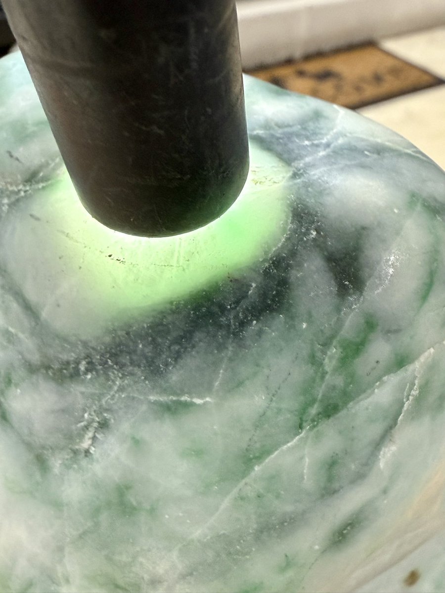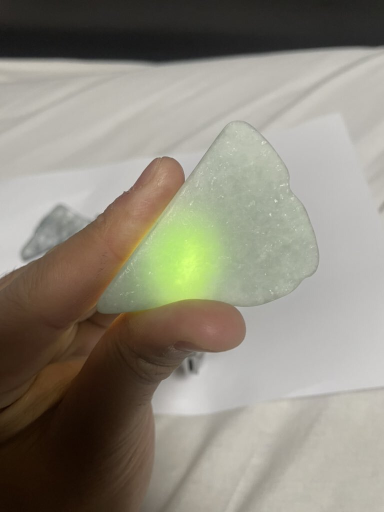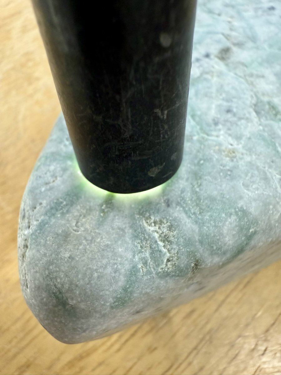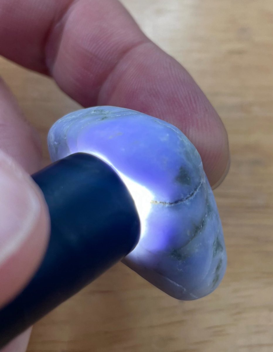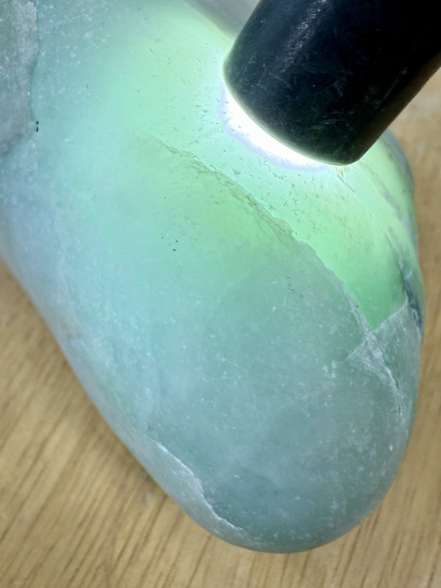 #糸魚川翡翠 ラベンダー翡翠 新しい方法で研磨を思いついたので試してみたらライトがハッキリ反射する程の滑らかな光沢が出ました もちろん素材がいいのはありますが簡単にここまで光沢出せたのは良い👍 pic.x.com/lr0qDGRgSv