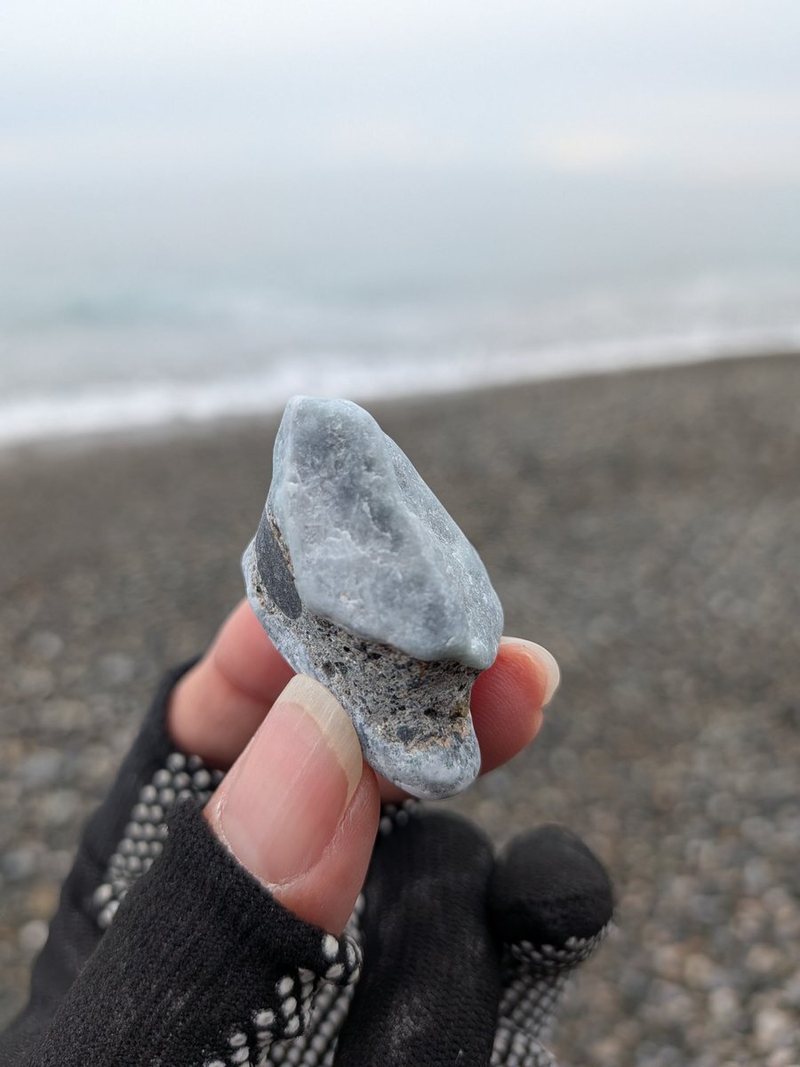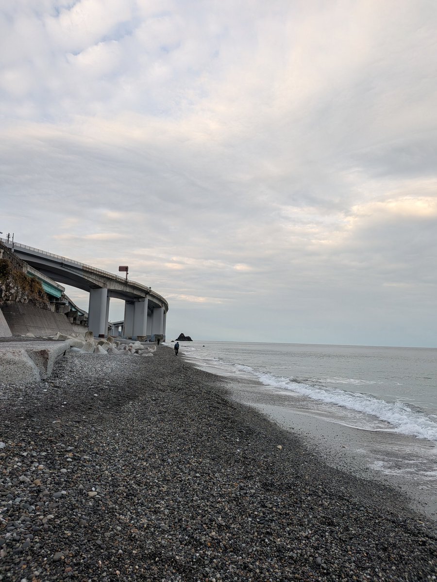おはようございます! 糸魚川入りしております〜😄 今日は石出てます(いつの間にか小粒拾えた) 波穏やか👍✨✨ 散策にはベストな感じ 朝イチから松殿さんに初めてお会いしました!!寒いところありがとうございます🙏 #糸魚川翡翠 pic.x.com/m9jQA6tadz