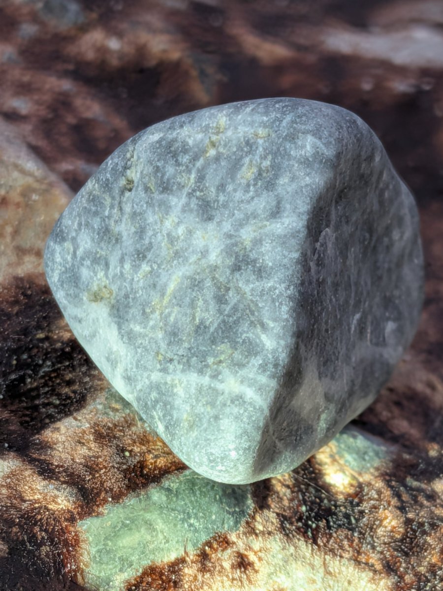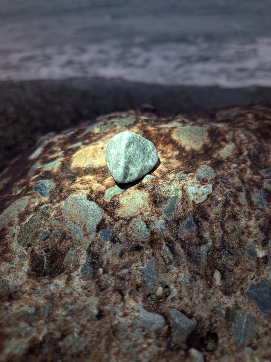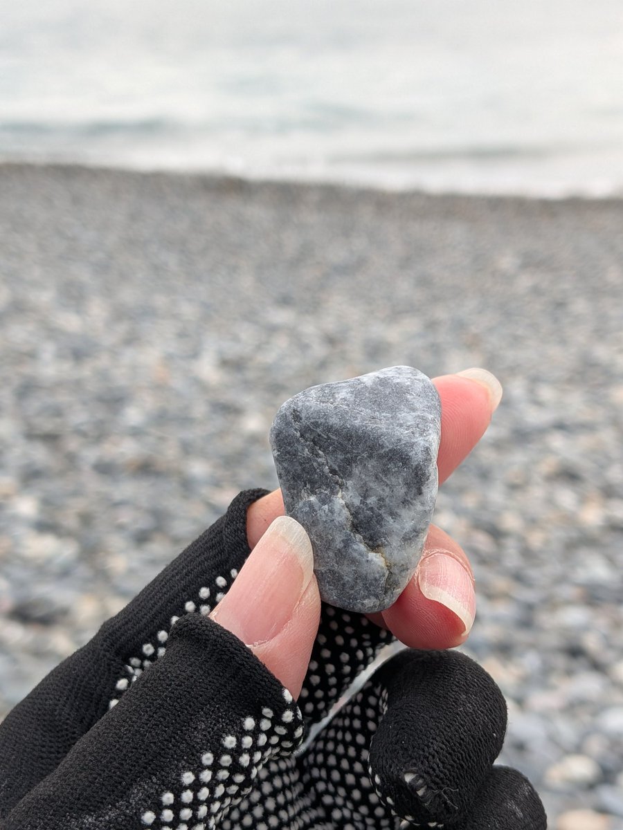 あのあと、別の浜で横川と思われる一石を発見しました☺️ 青が非常に控えめですが三角の特徴的な形✨👍 本日はこの石で打ち止めして帰ってきました 石の打ち上がりが結構少なかったので、まだ砂の中に潜って隠れていると思われます🤔いつ出てきてくれるかな #糸魚川翡翠 pic.x.com/lZadR4D0An
