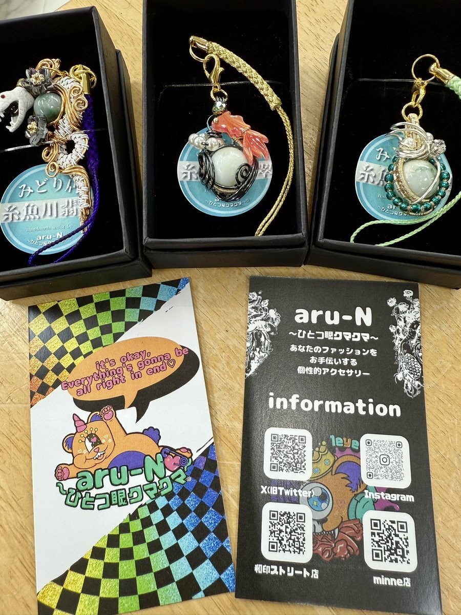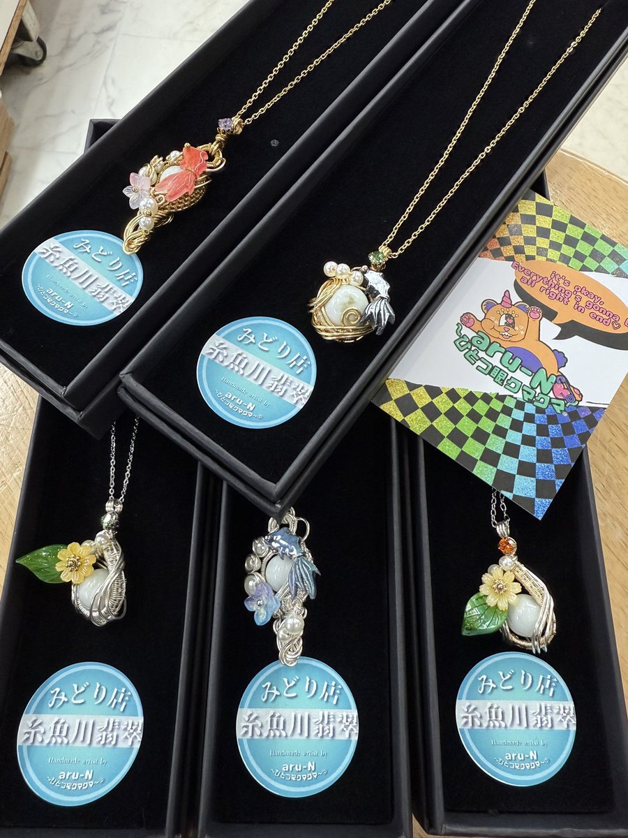 みどり店です。 aru-N〜ひとつ眼クマクマ〜様 @aruN_1eyeKMKM より、当店の翡翠とワイヤーアートのコラボ作品が届きました☺️☺️ お店で購入、又は東京ミネラルショーにて‼️😁👍👍 aru-N〜ひとつ眼クマクマ〜 和印ストリート店 wajirushi.com/shop/index.php… #糸魚川翡翠 #ひすい #和印ストリート pic.x.com/h4uyOFvea0