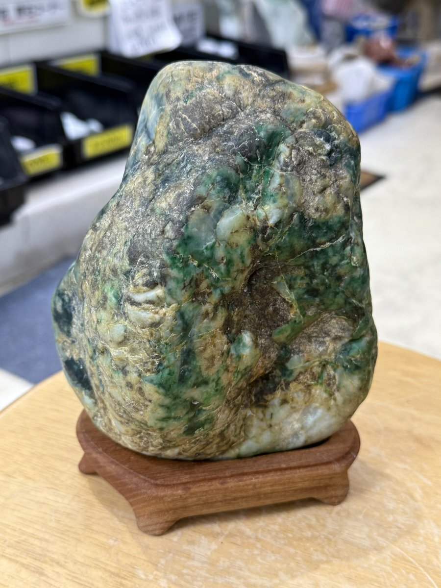 今日のヒスイは、 濃い緑(翠)の『ザ・金山系の翡翠🟢❗️』です😁 金山系の翡翠と言えば最も多い(よく拾われる)のが灰色翡翠ですが、角閃石から色をもらい濃い緑色に色付く翡翠があります😁👍 この濃い緑色の翡翠は姫川水系よりも金山系の方が多く産出されています。 #金山系の翡翠 #糸魚川翡翠 pic.x.com/YfVky1pPYC