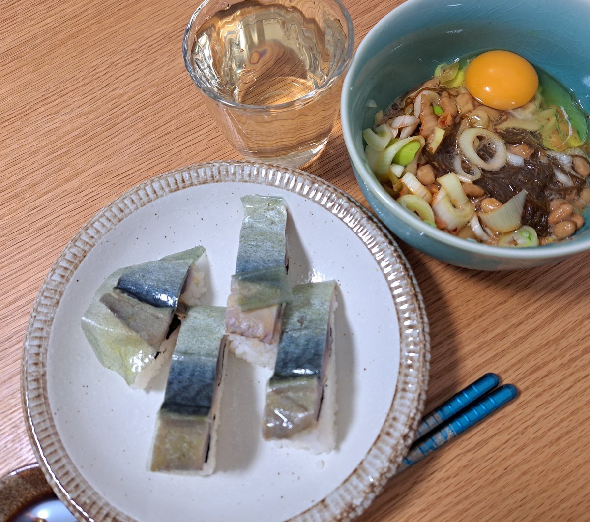 おはよさま🌥️ 今日も素敵元気に❇️ 術前日、点眼忘れないようにと( ̄□ ̄;)!! で、昨日の夕げ🍶~ #鯖寿司 たまには良いね~😋ありがちょ😋 #純米酒 #一合半酒 pic.x.com/g06PqsTtY3