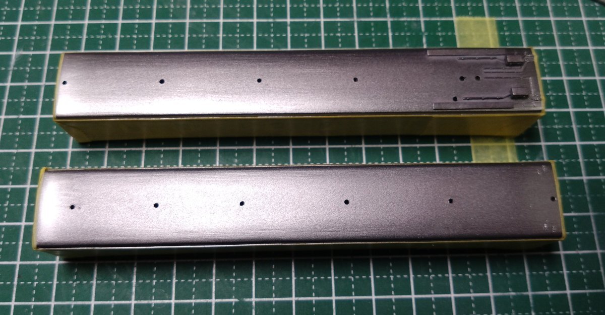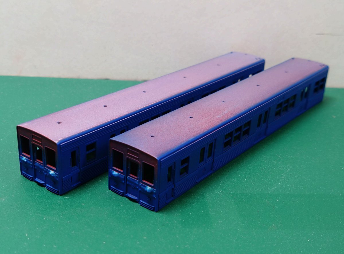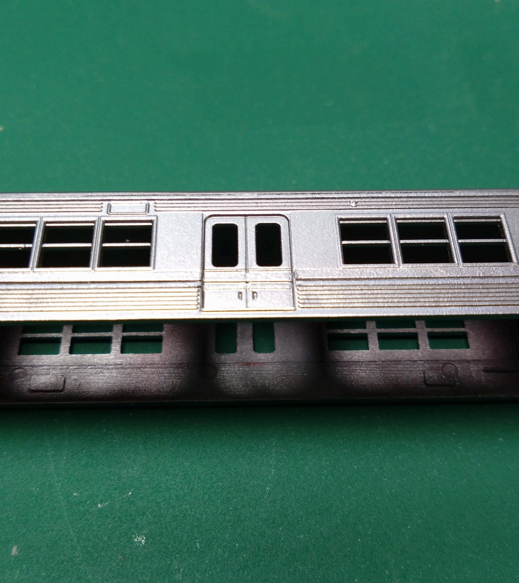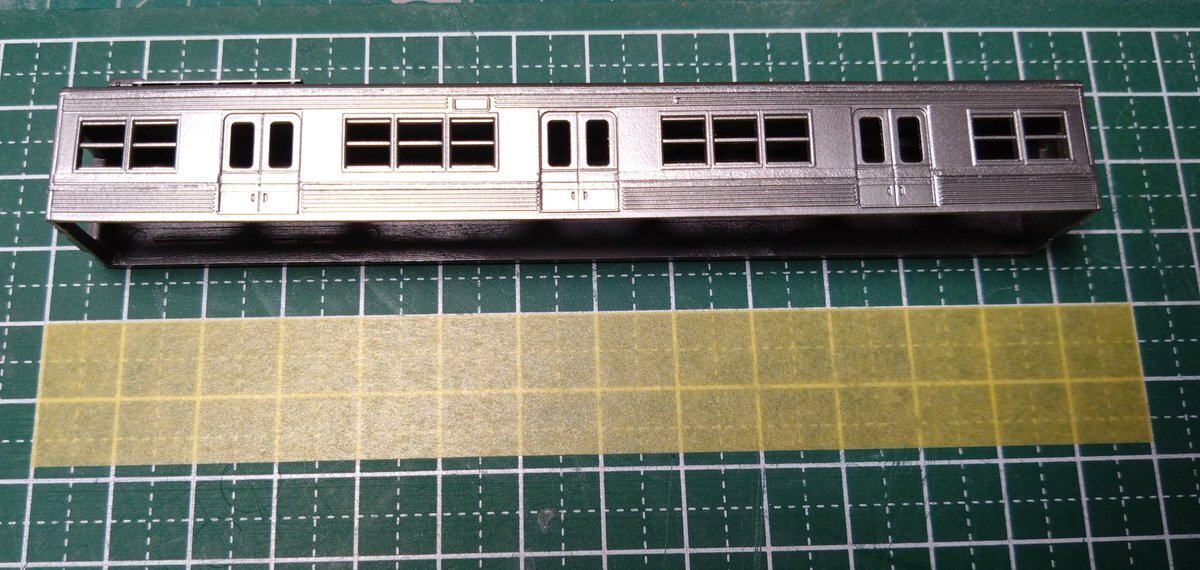 京成3500です!マスキング後に薄く艶有り黒で塗装した後、クレオスのスーパーステンレス2で塗装しました。今日はここまでで一晩置こうと思います。 #経過 #開運京成キット大会 pic.x.com/iVpi4C5f7M