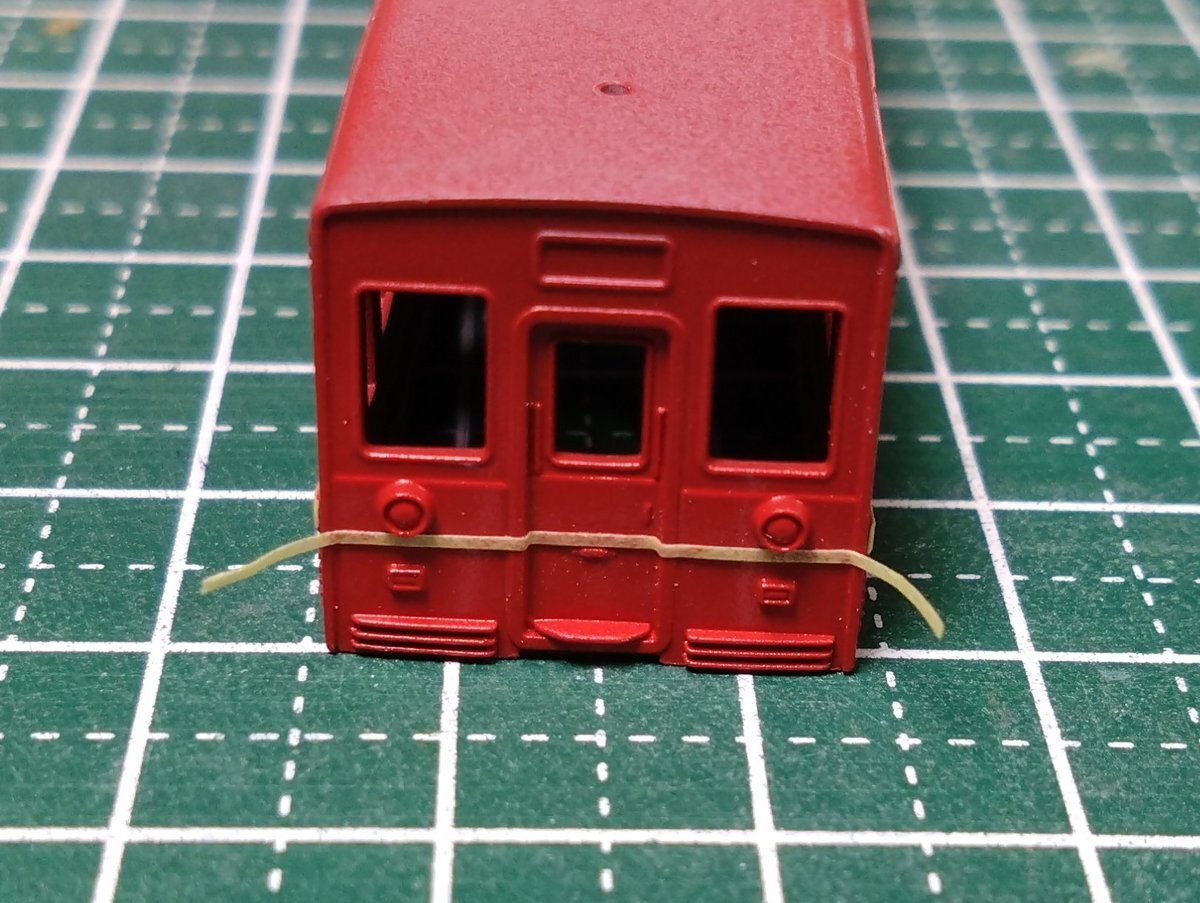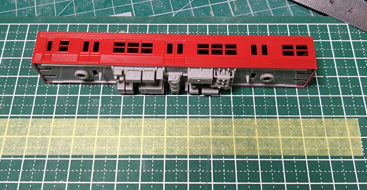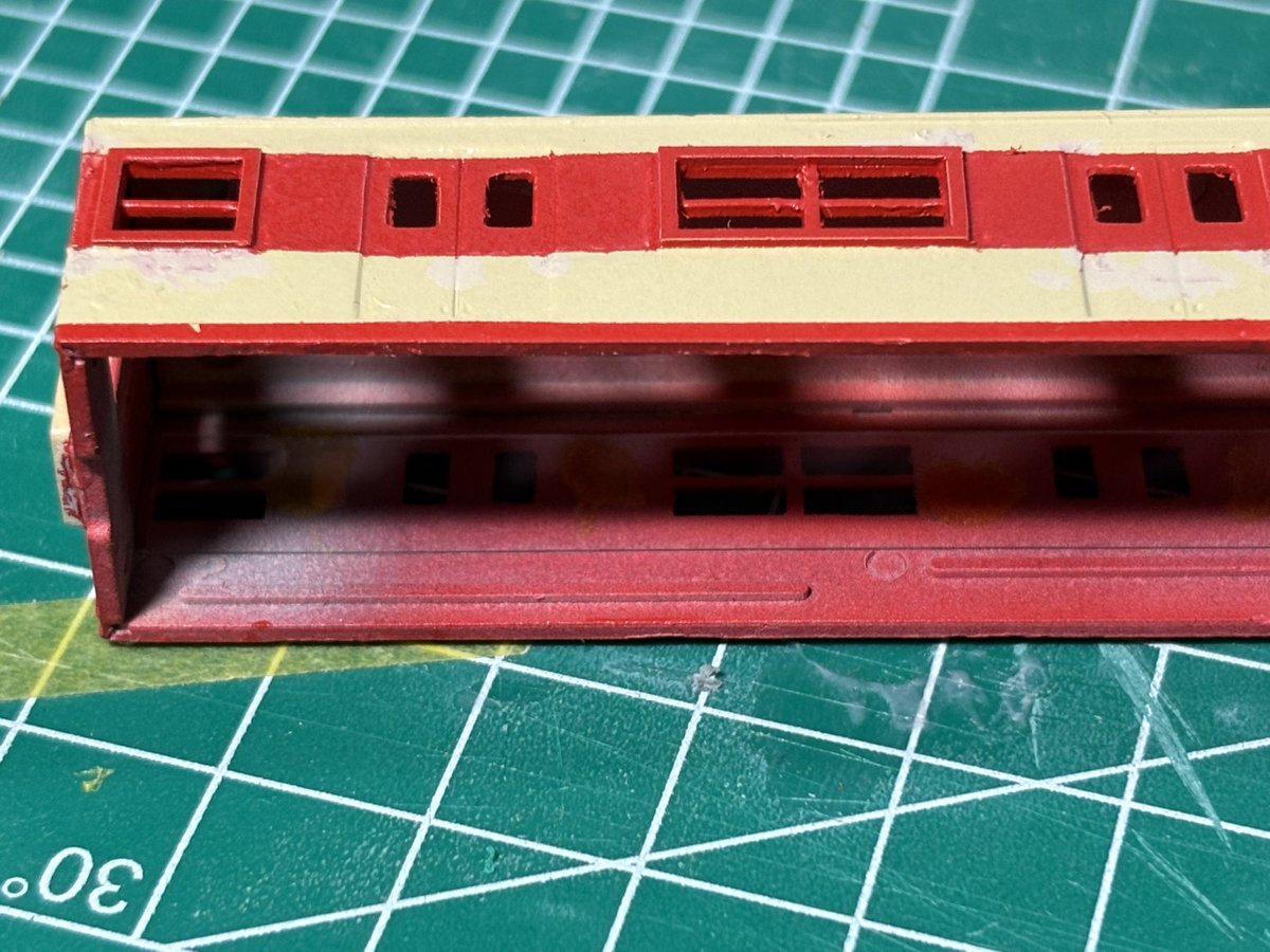 京成3500です!今日からマスキングです。先ずは窓下の赤帯から行おうと思います。マスキングをする際は床板をはめておくと車体が歪みにくくなります。 #経過 #開運京成キット大会 pic.x.com/yMRmkCBY85