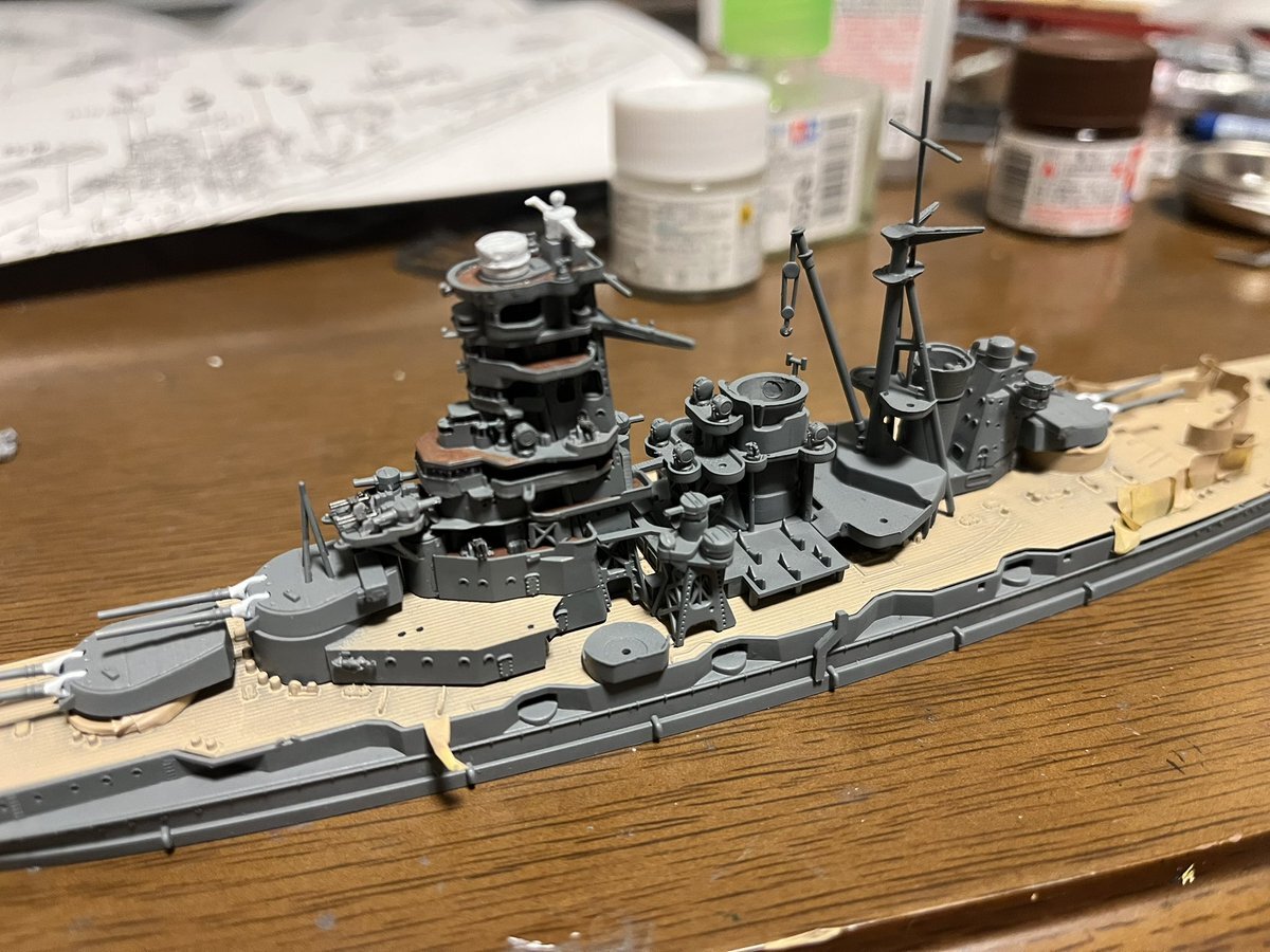 艦橋完成! 甲板をもう一度塗る為に接着とかはまだまだですが完成形は見えてきました この重厚感…やっぱ日本戦艦ってかっこいいなぁ #プラモデルライフ #艦船模型 #経過 pic.x.com/urhR37w2WJ