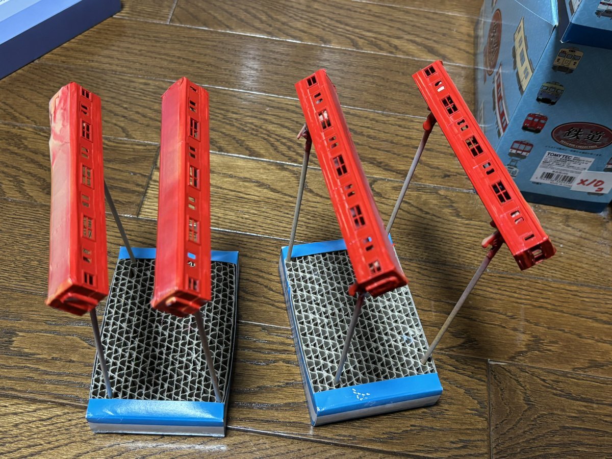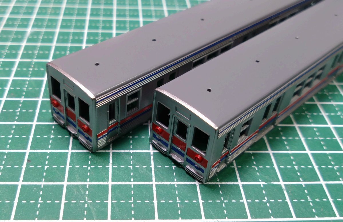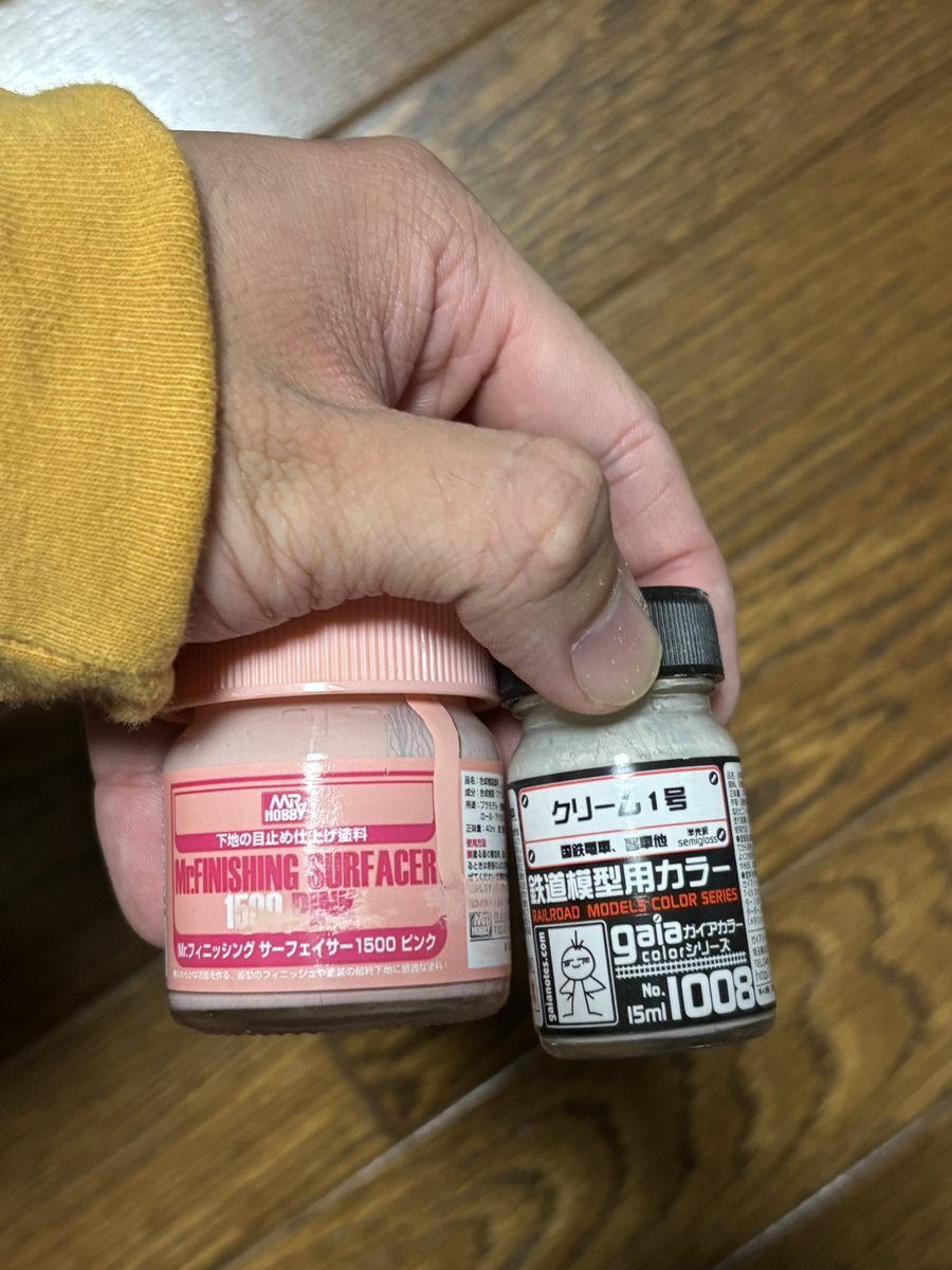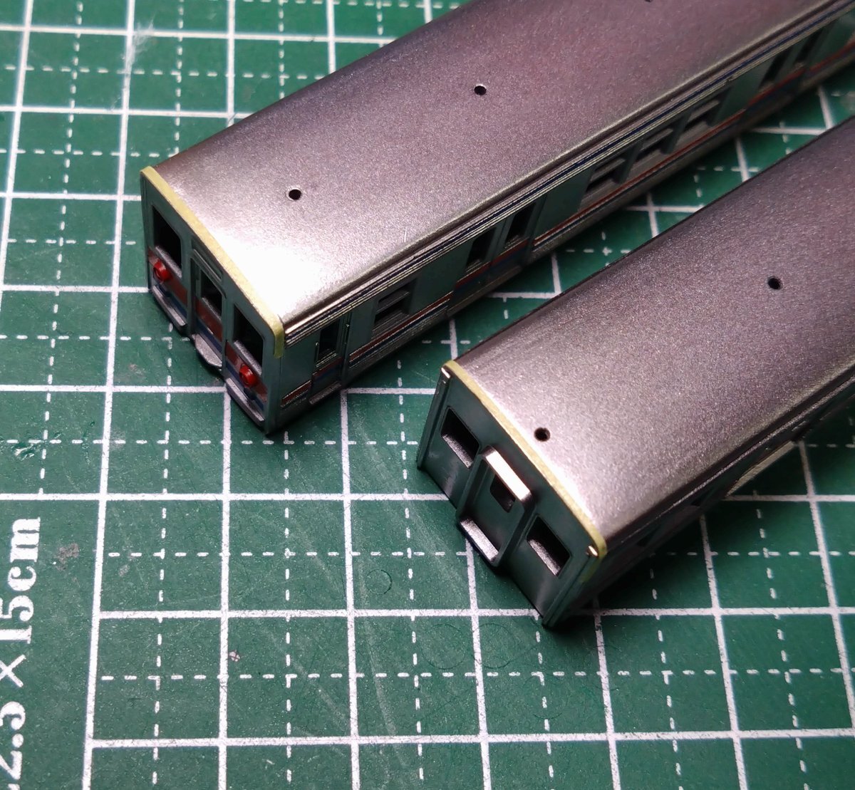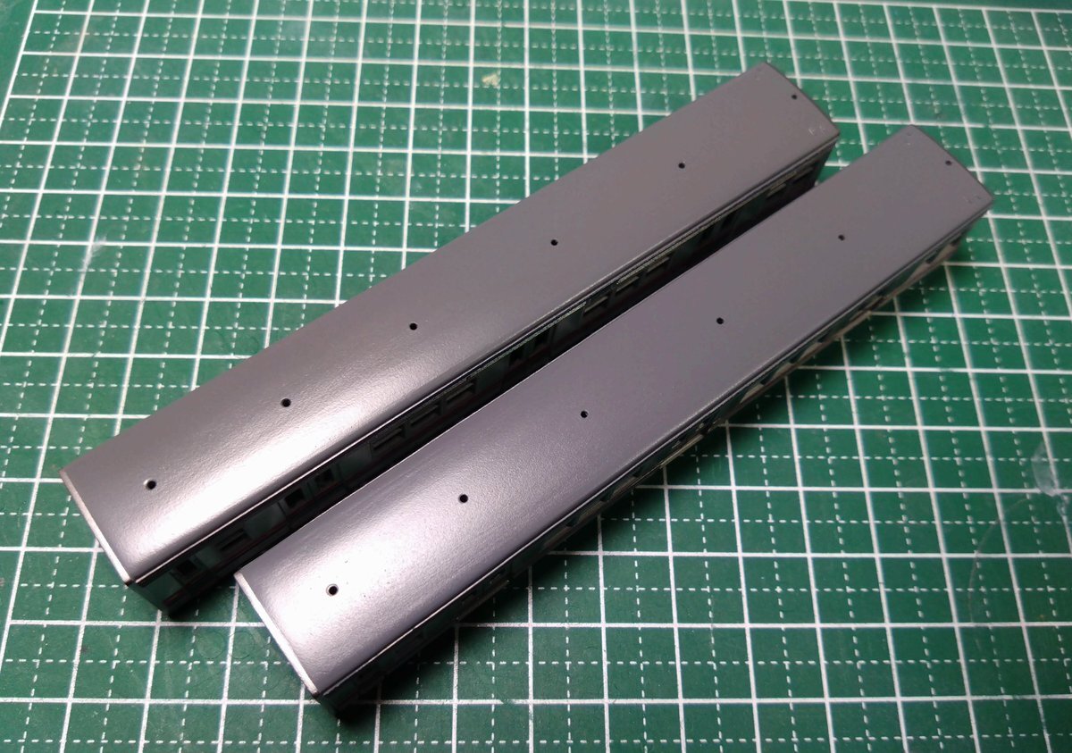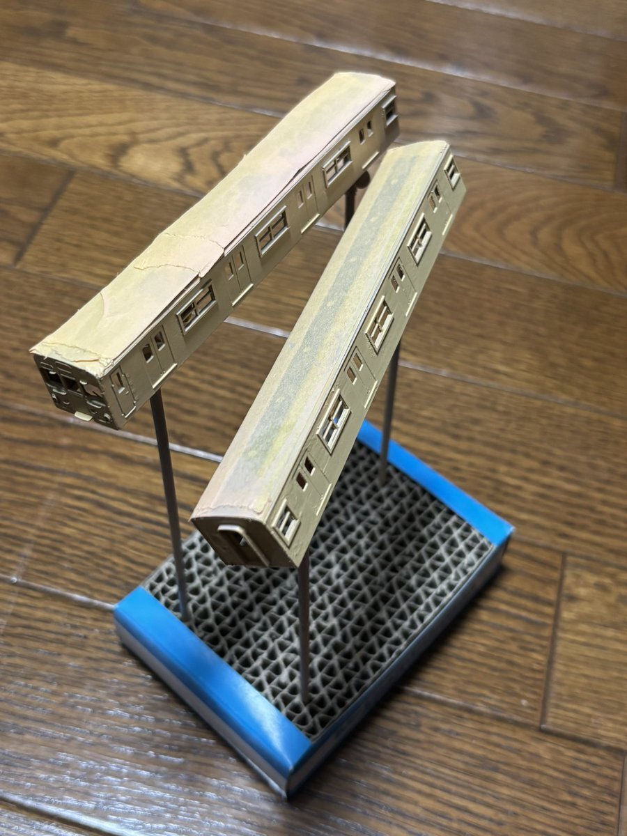 京成3500です!一晩経って塗料が乾いたので、塗装中に入った小ちゃいポッチとかホコリとか削り取ります。それなりに綺麗になりましたら再度スーパーステンレス2を吹き付けます。綺麗になるまで頑張るぞぃ😹。 #経過 #開運京成キット大会 pic.x.com/MEiI1FOs1c