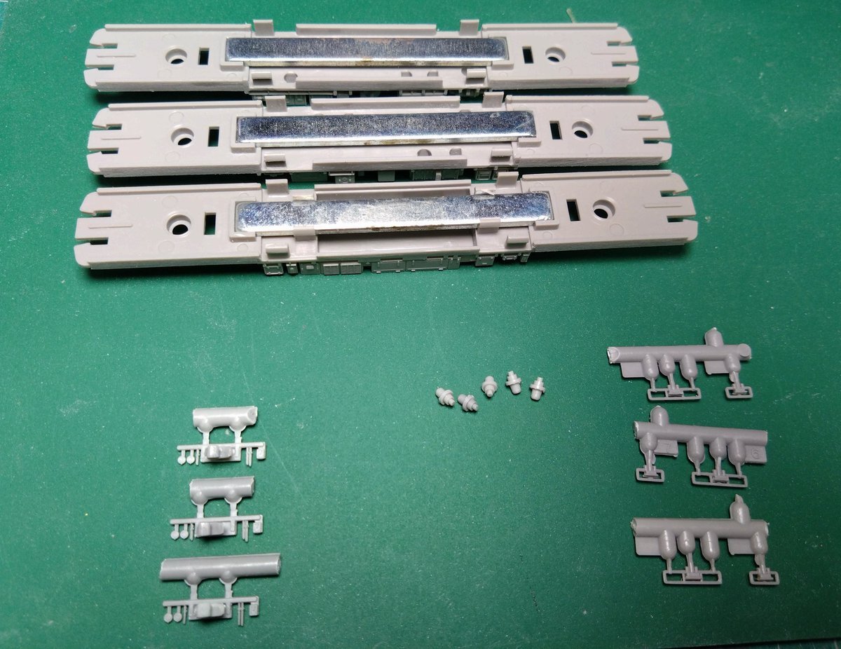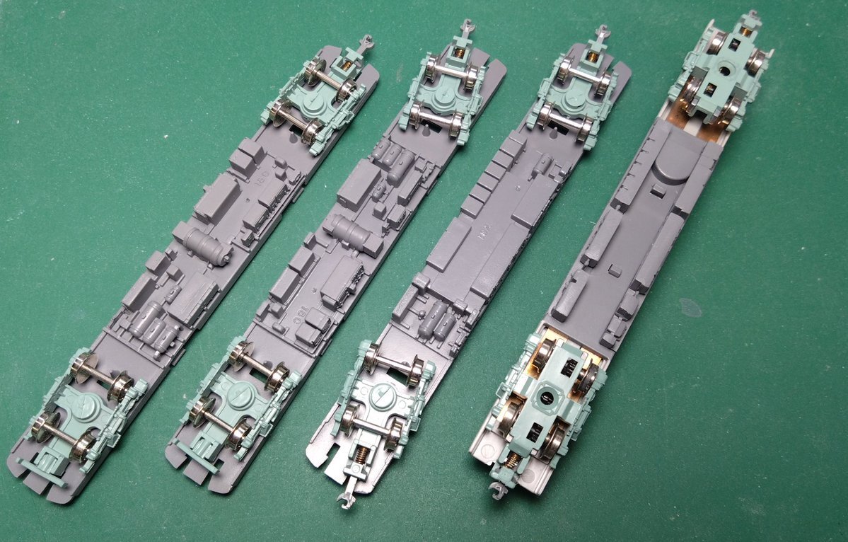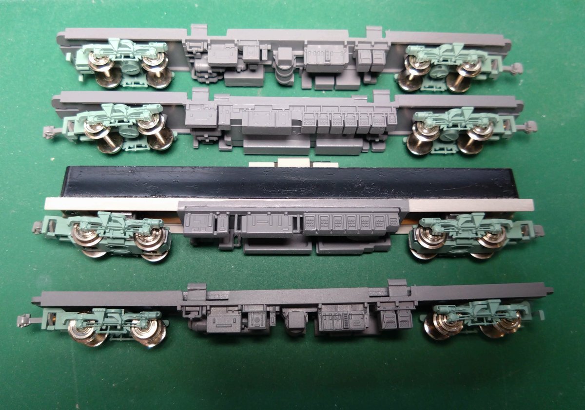 #GM201系板キット大会 #経過 ラストスパート! 部品を組み付けます。 窓はキット付属の透明板を接着。 屋根上機器も本接着します。 台車はものが無いので、似ている台車を使います。 M車にDT33、T車にTR62を使用しました。 床下機器は103系のものを使います。 pic.x.com/TQXd2utJ4X