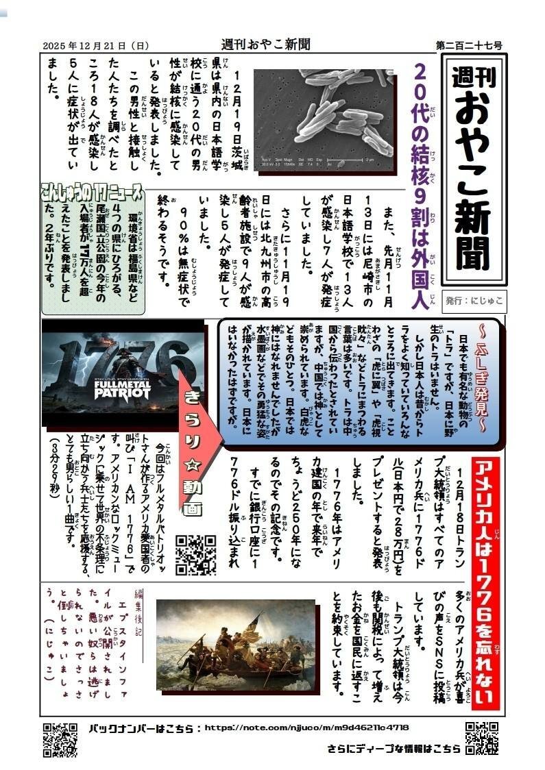 にじゅこさんから、今週も無事に発行されました🐸🍿🙏 害國人が日本に #結核 を持ち込んでいる⁉️🤔 虎なんて日本にいないに、なぜか昔から虎という言葉がよく出てくる🤔 アメリカ兵に大盤振る舞いなトランプ大統領🐸🍿 日本でも不要な税はさっさと廃止して欲しいものです😖 pic.x.com/WEXDk7RCiX