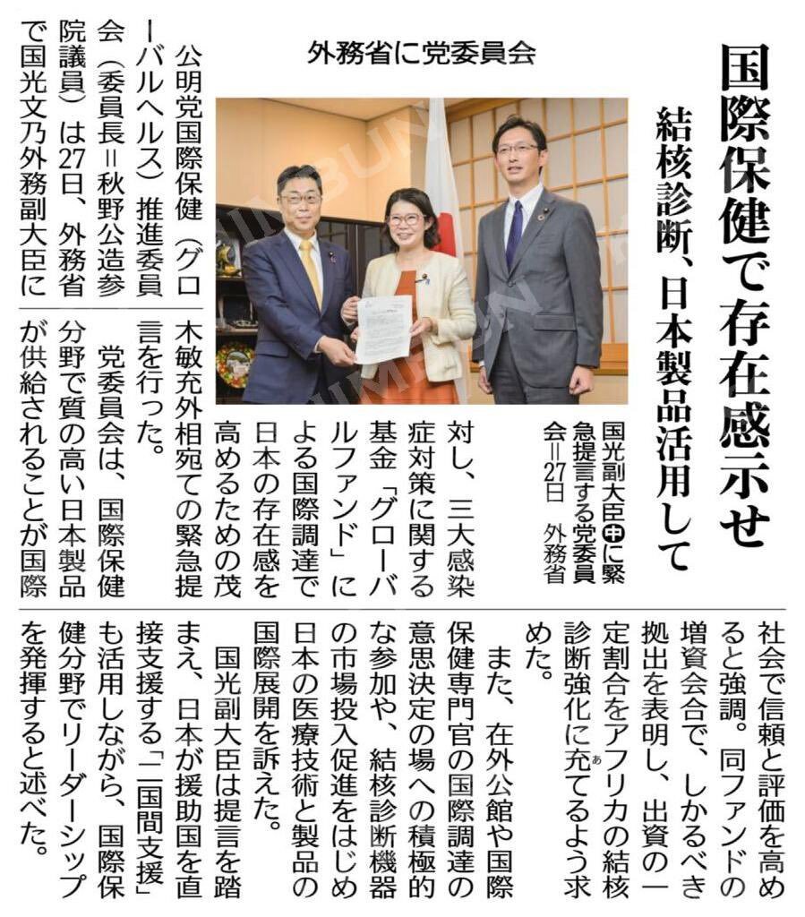 公明党国際保健(グローバルヘルス)委員会として、国光あやの外務副大臣に対して緊急提言を行いました。 一昨年にアンゴラ国、本年8月にザンビア国を訪ね、両国において重要な結核対策に、わが国の栄研化学が開発したLAMP法を用いた結核診断装置のニーズが高いことを確認しました。 x.com/akinokozo/stat…