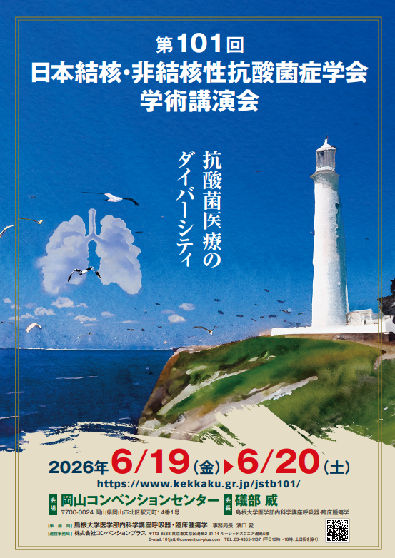 第101回学術講演会の演題を現在募集中です。岡山コンベンションセンターで開催されます(大会長:島根大学医学部内科学講座呼吸器・臨床腫瘍学 礒部威教授)。 #JSTB101 #結核 #非結核性抗酸菌症 kekkaku.gr.jp/jstb101/ pic.x.com/rBW0wP2883 x.com/kekkakuJSTB/st…