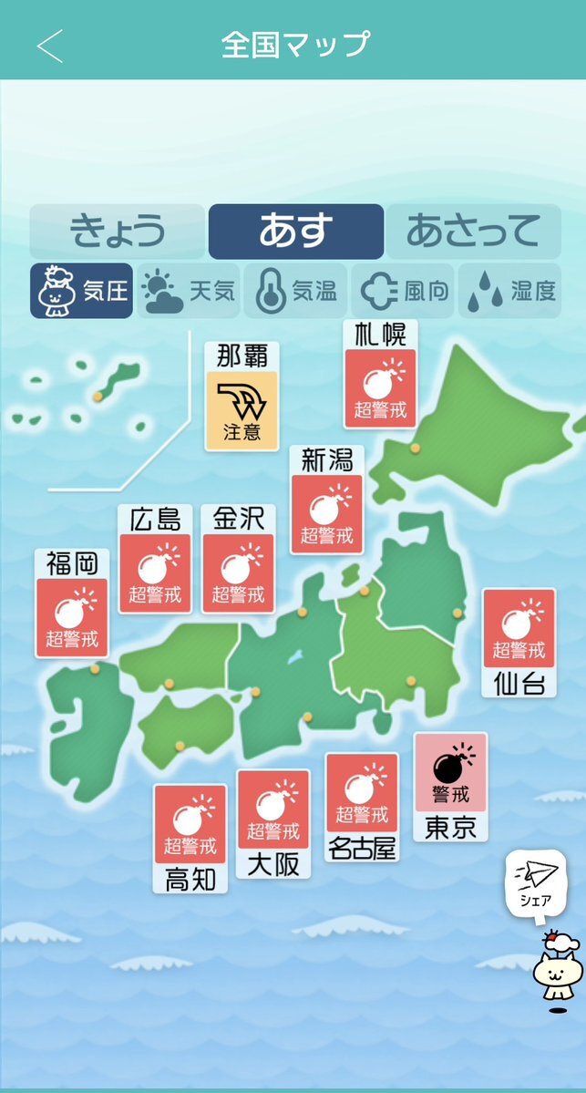 【気圧ドーン落ちるで!】 明日12/23、明後日12/24は全国的に気圧がガツンと落ちる予定。 気圧の変化に敏感な、体調を崩しやすい人は今日からしっかり備えましょう! 特に今日からご飯に気を付けて! あっさり温かいご飯をよく噛んで食べよね。