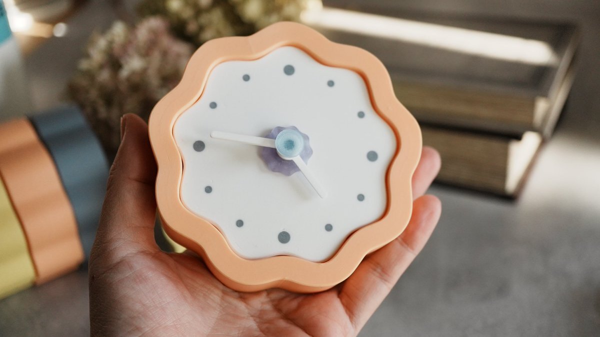 サブレクロックと名付けました。内部のムーブメントと真鍮のネジ以外、3Dプリントです。ひとつひとつのパーツも手触りがやさしくなるように角を少し丸めています。北欧パステルをイメージした配色で、やさしい置き時計になりました。 #3Dプリント #置き時計 pic.x.com/KqUMuDiLUq