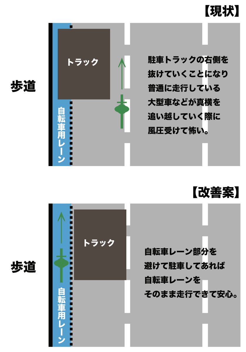 #自転車専用レーン があるのに歩道を走ると来年から6000円の #罰金 。ならば、専用レーンの安全性を確保してほしい。#違法駐車 は論外だが、配送車の一時駐車もこうしてくれればかなり違う。このまま施行してしまうと、やがて犠牲者が出ると思うし、そもそも専用になっていない。#普通自転車専用通行帯 pic.x.com/0hmDStRGOQ