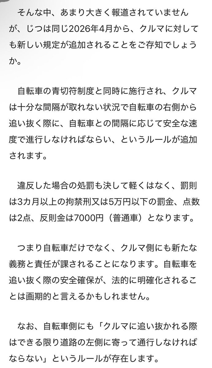 来年4月からの自転車の違反で何が罰金になるのかわからない! という声がありましたので、整理します。 自分で「危ないなぁ」と思う乗り方をしなければ良いのですが、気を付けるべきは 【ながらスマホ、2人乗り、信号無視、酒気帯び、傘差し運転】 です。 #自転車 #罰金 share.google/Zr962q46RSqC43…