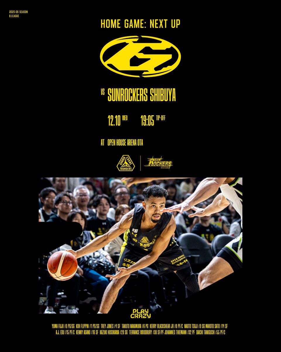 ⚡️Next Up⚡️ 🆚#サンロッカーズ渋谷 ⏰12/10(水) 19:05 Tip Off 📍#オプアリ ▼試合情報 g-crane-thunders.jp/lp/game_202512… #群馬クレインサンダーズ #Bリーグ #PLAYCRAZY