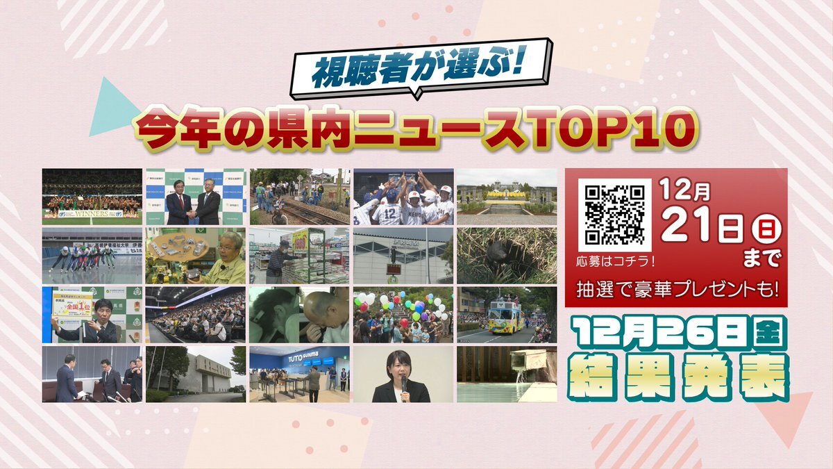 年内最後の「#がるがる」ではこんな企画を放送します!題して…「視聴者が選ぶ!今年の県内ニュースTOP10」投票いただいた方の中から素敵なプレゼントも!投票をお待ちしています forms.gle/X8rwVGtumTLXJn… #群馬テレビ pic.x.com/XpRn0QiQZM