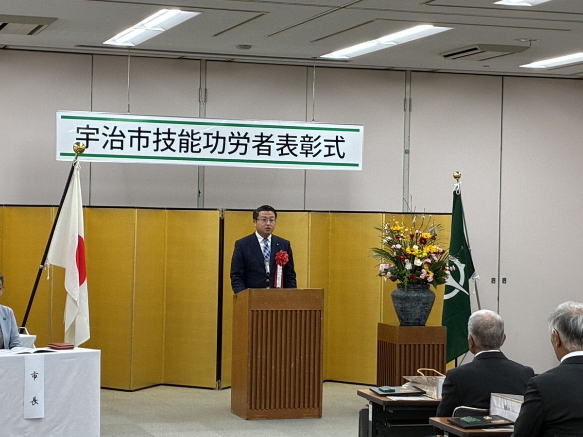 毎年11月23日は宇治市技能功労者表彰式‼️ 今年は7名に方々が表彰されました👍 表彰をお受けになられました皆様おめでとうございます。議長として祝辞を述べさせていただきました。 #宇治 #技能功労者 #表彰式 #議長 #議員 #自民 pic.x.com/DChkC2zyBE
