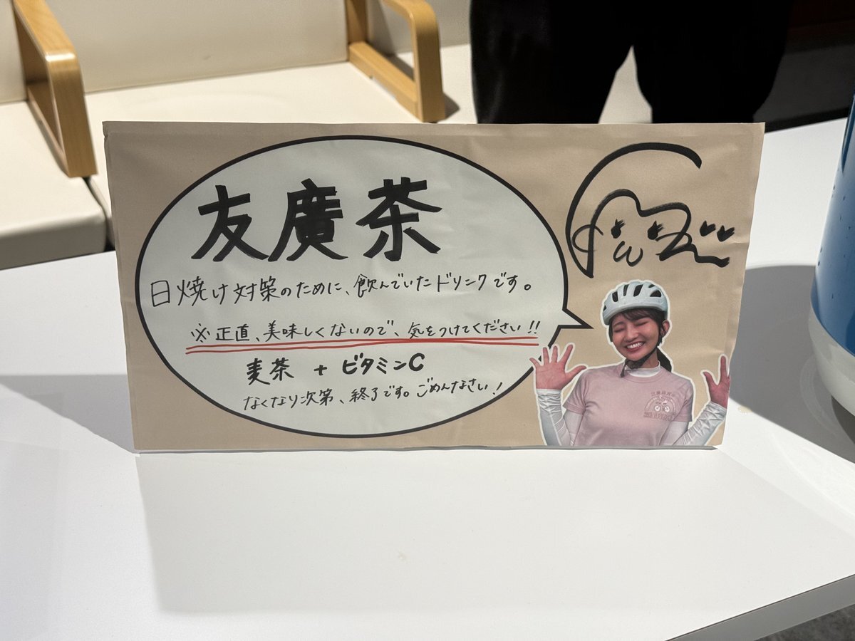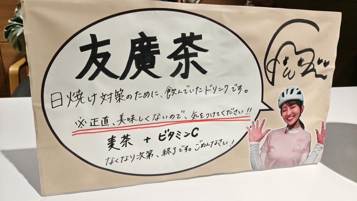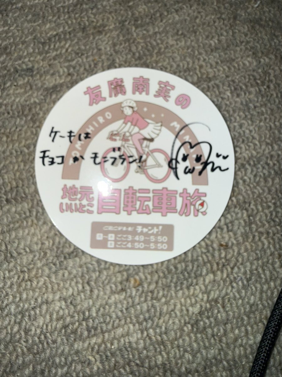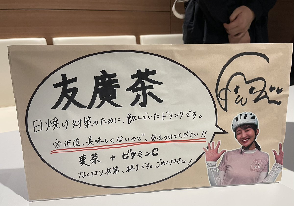 最後に友廣アナから、締めのお言葉を頂いて、イベントはお開きとなり、最後は友廣アナから手渡しでコメント入りのメッセージカードを頂きました〜 その際に、池田町のひまわり畑の情報Xで投稿しましたがロケ時にはもう咲いてなくて、手間を取らせてしまい謝りました〜 #友廣南実 #チャント #自転車旅 pic.x.com/QAtF6Yl5W4