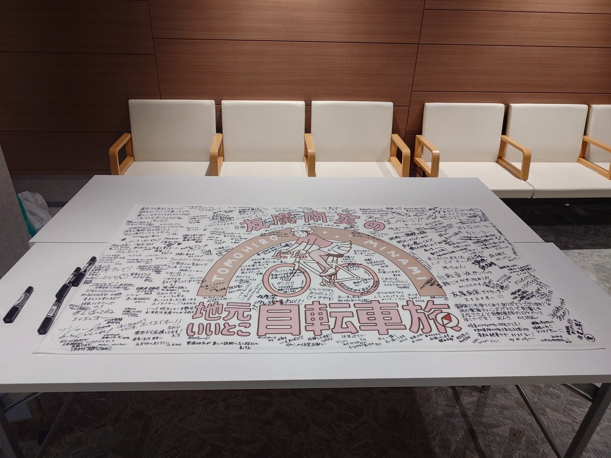 ようやっと名古屋から神戸に帰ってきた 友廣さん、間近で見たらほんまべっぴんさんやったわ~☺️ 自転車もう慣れてるやろうから、ペダルにマウンテンバイク用のSPDビンディング使うのはどうやろ? サインの横の一言は次のイベントで用意しろって事ですかい?笑 #友廣南実 #自転車旅 pic.x.com/t8lPYFUKnH