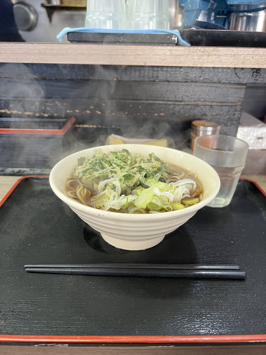 #自転車通勤 の今日の朝飯、日本橋富沢町の #あり賀せいろう で春菊天そばを頂きます(-人-) サクッと揚がった春菊天、豊かな香りが濛々と立ち上る湯気に漂って超うMeee-!🥢ヾ(´∀` ) ん〜、わりと猫舌の俺ですがやはりここの熱々の汁はこの季節ありがたいですなぁ🥢ヾ(´ε`;)フーフー #立ち食いそば pic.x.com/0NHEO1vAJQ