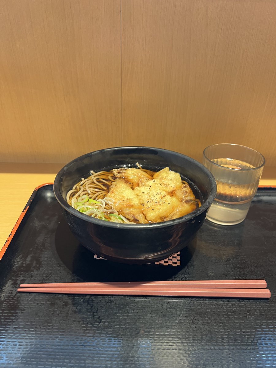 #自転車通勤 の今日の朝飯、上野5丁目の #よもだそば 御徒町店で週替わりメニューのシャウエッセンと長芋のかき揚げそばを頂きます(-人-) 見た目じゃ全然目立たないけど薄切りのシャウエッセンから思いのほか味が出ていて中々スパイシー、長芋もホクホクしていて超うMeee-!🥢ヾ(´∀` ) #立ち食いそば pic.x.com/guEOgakmo5