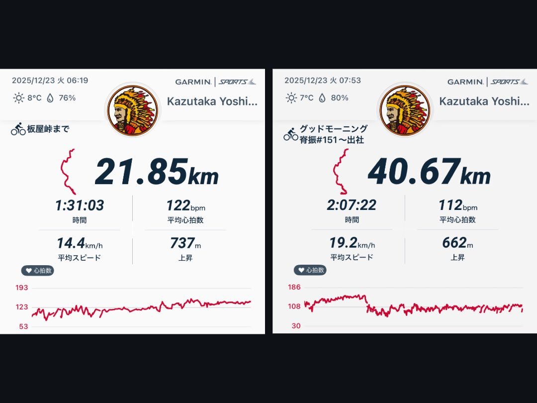 12/19 晴れ間あり@広島、ロードにて15km おはようございます。 今日も降霜なく少し寒さ緩んだ朝です。 明日、父の傘寿のお祝い予定 長女家族も寄って賑やかにやります。 さぁ、金曜日 持ち場で全力を尽くします。 #イマソラ #定点観測 #自転車通勤 pic.x.com/ryatgDMj1U