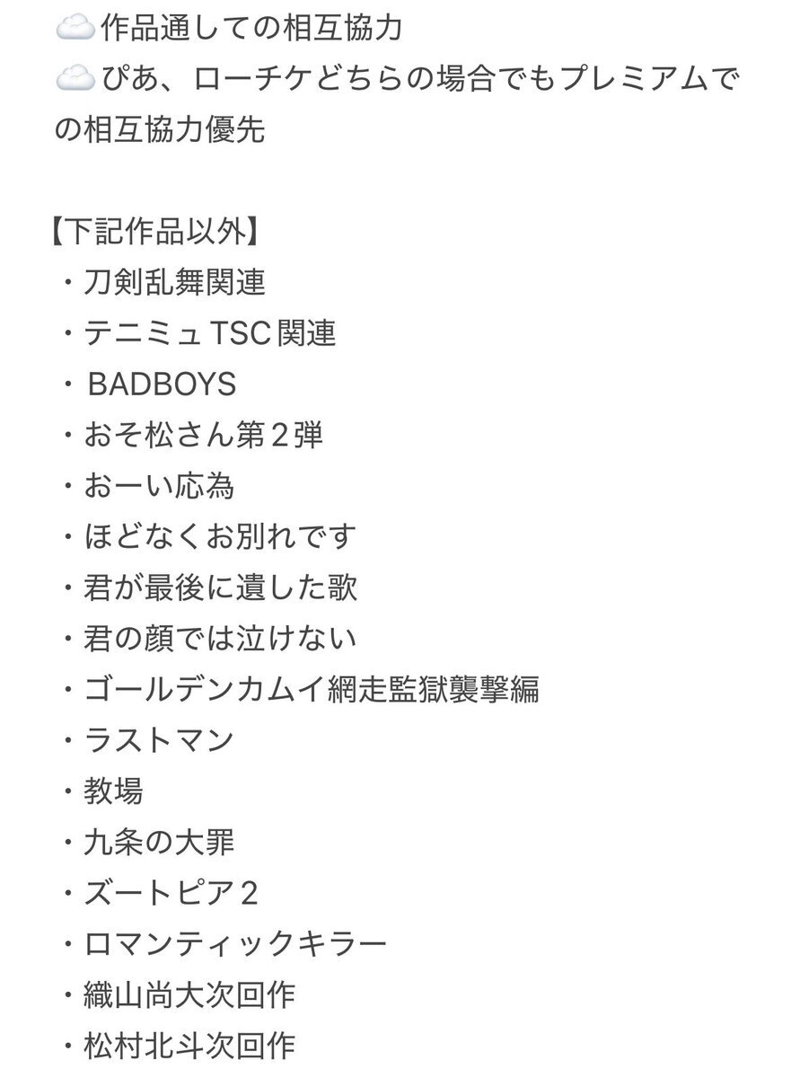 チケット 相互協力 【求】単発→佐野勇斗カレンダー発売記念イベント(ローチケ抽選) 長期→佐野勇斗関連 【譲】プロカ参照 profcard.info/u/AuFyzsw2Bggi… ぴあプレ、ロープレ、その他 時間が合えば先着も🉑 相互協力可能な方いましたらDMお願いいたします。 #舞台挨拶 #相互協力
